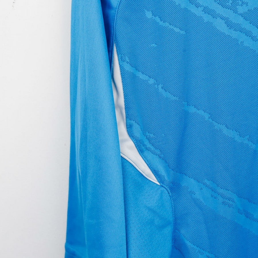 Maglia Training Inter Nike 2007/2008. Prodotta da Nike, la maglia presenta lo stemma dell'Inter con stella celebrativa e lo scudetto tricolore al centro del petto, simbolo del titolo vinto nella stagione precedente. Il design è caratterizzato da un'inedita tonalità azzurra con inserti bianchi laterali e sulla spalla, e texture a strisce diagonali tono su tono sul retro. Il logo tecnico è posizionato sul lato sinistro. Realizzata con tecnologia NikeFit Dry, è ideale per l'attività sportiva. La taglia indicata è L.