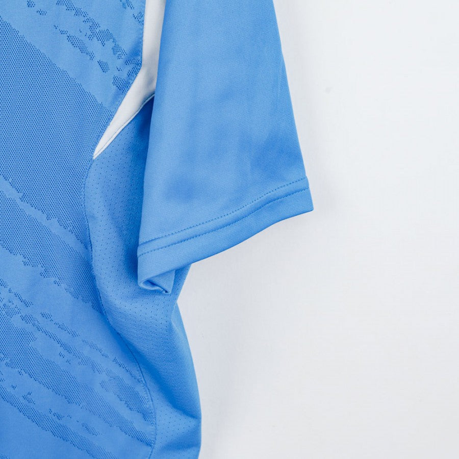 Questa è la maglia training ufficiale dell'Inter per la stagione 2007/2008, prodotta dallo sponsor tecnico Nike. La maglia presenta un design semplice in azzurro, con il logo Nike bianco sul petto e lo stemma dell'Inter, accompagnato dalla stella che rappresenta i 10 scudetti vinti dal club. Sul davanti è presente anche lo scudetto tricolore, in omaggio alla vittoria del campionato precedente. I dettagli bianchi sui lati e il tessuto traspirante rendono questa maglia ideale per gli allenamenti, offrendo comfort e leggerezza ai giocatori durante la preparazione atletica.
