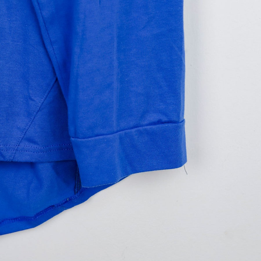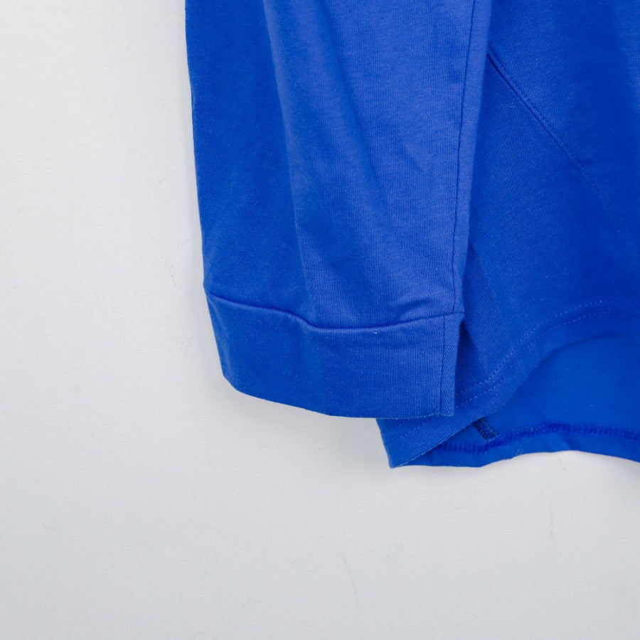 Maglia ufficiale da allenamento della Sampdoria, stagione 2004/2005, prodotta dallo sponsor tecnico Kappa. La maglia è di colore blu con maniche lunghe e presenta lo stemma della Sampdoria ricamato sul lato cuore. Lo sponsor commerciale ERG è stampato in bianco al centro del petto, mentre il logo Kappa appare sia sul fronte che sulle maniche. La maglia, semplice e funzionale, è ideale per chi vuole allenarsi o tifare la Sampdoria con uno stile classico. La taglia di questo modello è XL.