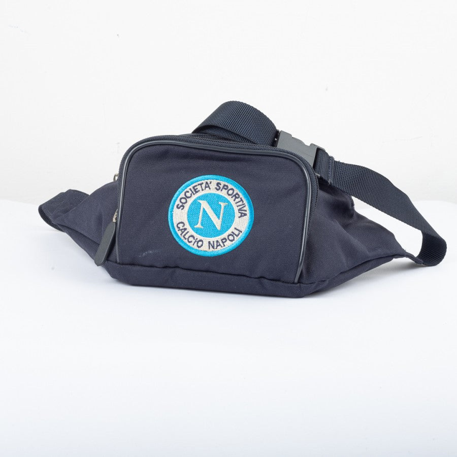 Marsupio ufficiale SSC Napoli della stagione 2000/2001, prodotto da Diadora. Il marsupio presenta il logo ricamato del club partenopeo e il marchio Diadora ben visibili sulla parte frontale e posteriore. La struttura è compatta ma funzionale, con zip anteriori e regolazione in vita tramite fibbia a scatto. Questo accessorio faceva parte del merchandising ufficiale durante un'annata segnata dal ritorno in Serie A del Napoli sotto la guida tecnica di Zeman.