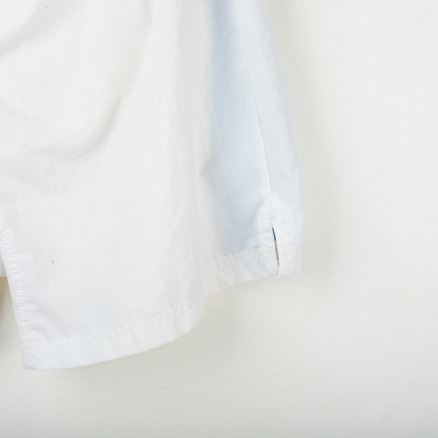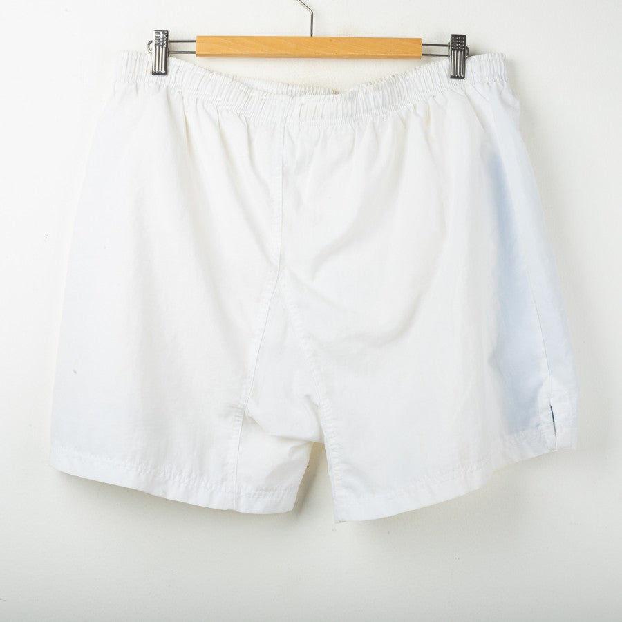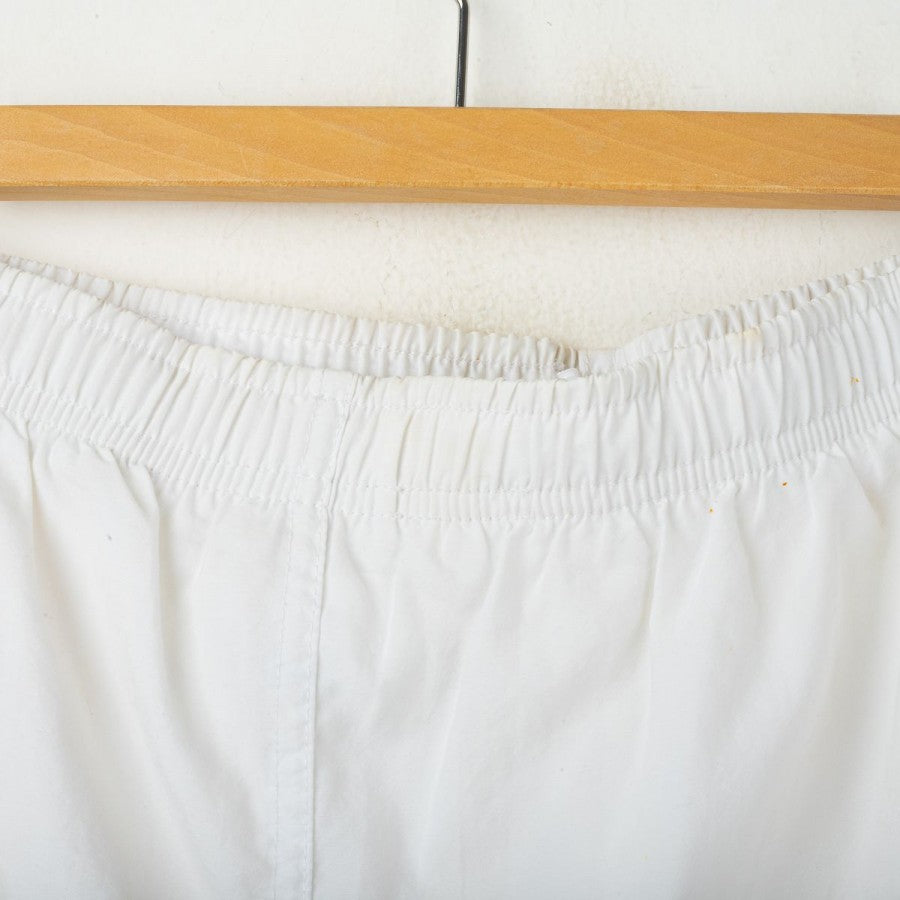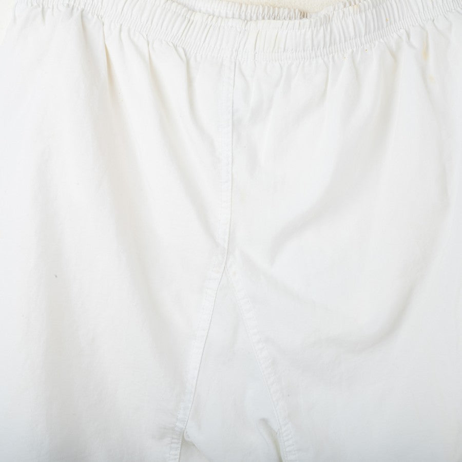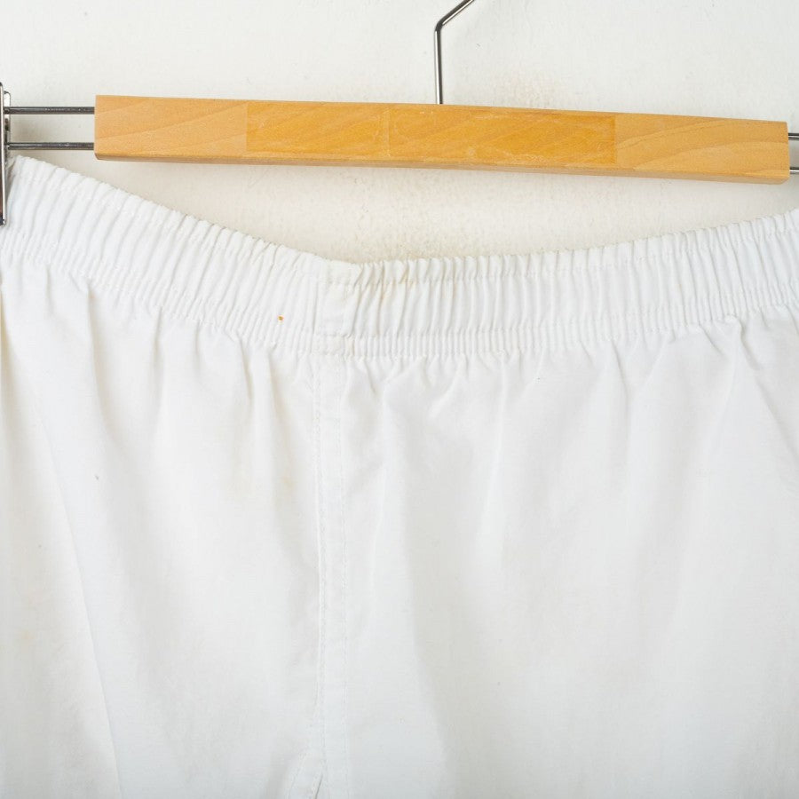 Pantaloncini away del Napoli stagione 1997/1998, prodotti da Nike. Colore bianco con banda laterale azzurra. Logo Nike ricamato sulla gamba destra, stemma SSC Napoli cucito su quella sinistra. Modello ufficiale da gara. Taglia L.