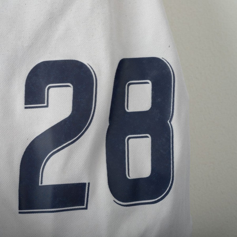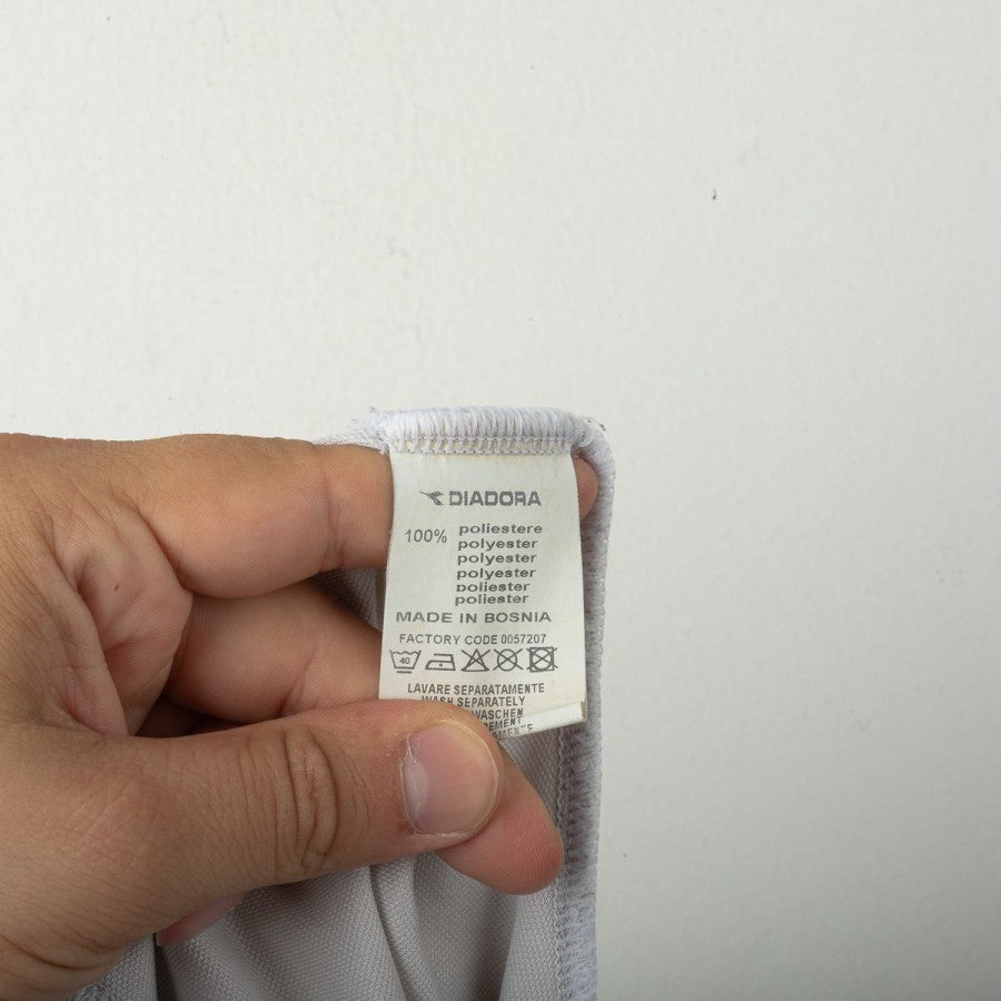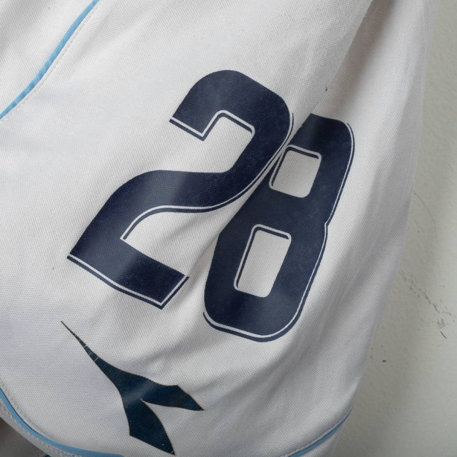 Pantaloncini ufficiali del Napoli stagione 2008/2009, versione home, realizzati dallo sponsor tecnico Diadora. Di colore bianco con dettagli azzurri lungo i lati e numero 28. Presente lo stemma SSC Napoli e il logo Diadora. Taglia XL.