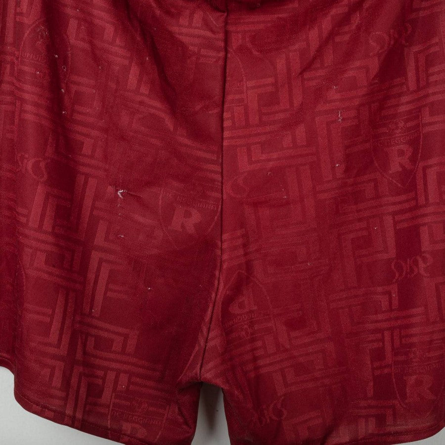 Pantaloncini home della Reggiana stagione 1995/1996, prodotti da Asics. Modello ufficiale da gara, colore granata con loghi Asics bianchi ripetuti lungo i lati. Tessuto tecnico con trama jacquard che riporta motivi geometrici e lo stemma della Reggiana. Logo Asics sulla gamba. Vestibilità classica anni '90.