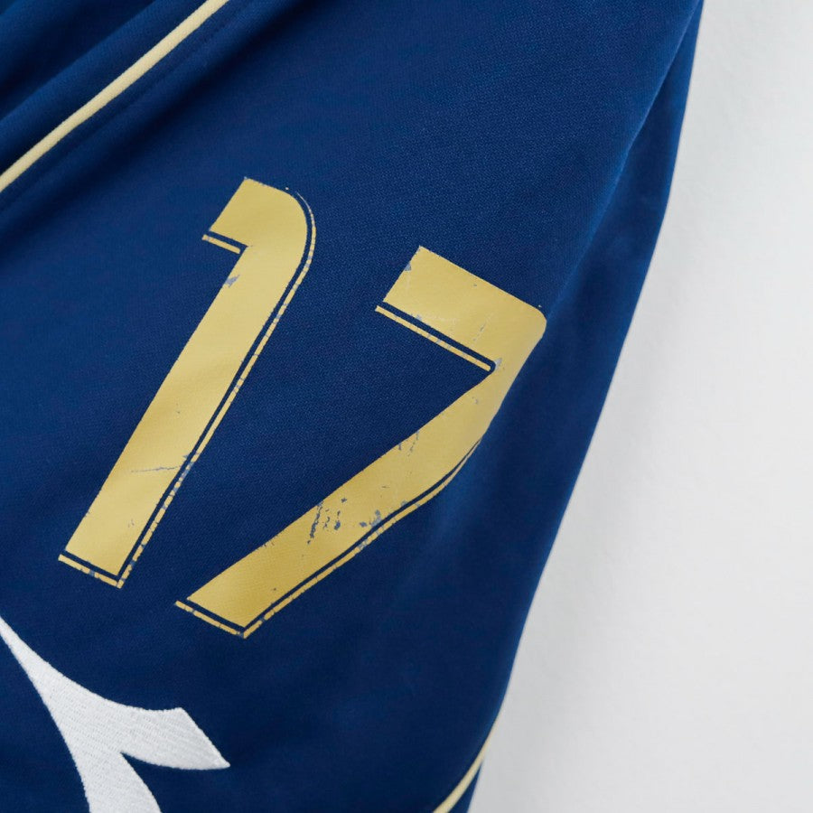 Pantaloncini third del Napoli stagione 2008/2009, prodotti da Diadora e preparati per il numero 17. Modello ufficiale da gara, colore blu con dettagli in oro. Logo Diadora ricamato, stemma SSC Napoli cucito sulla gamba. Numero 17 applicato in stampa dorata. Taglia M.