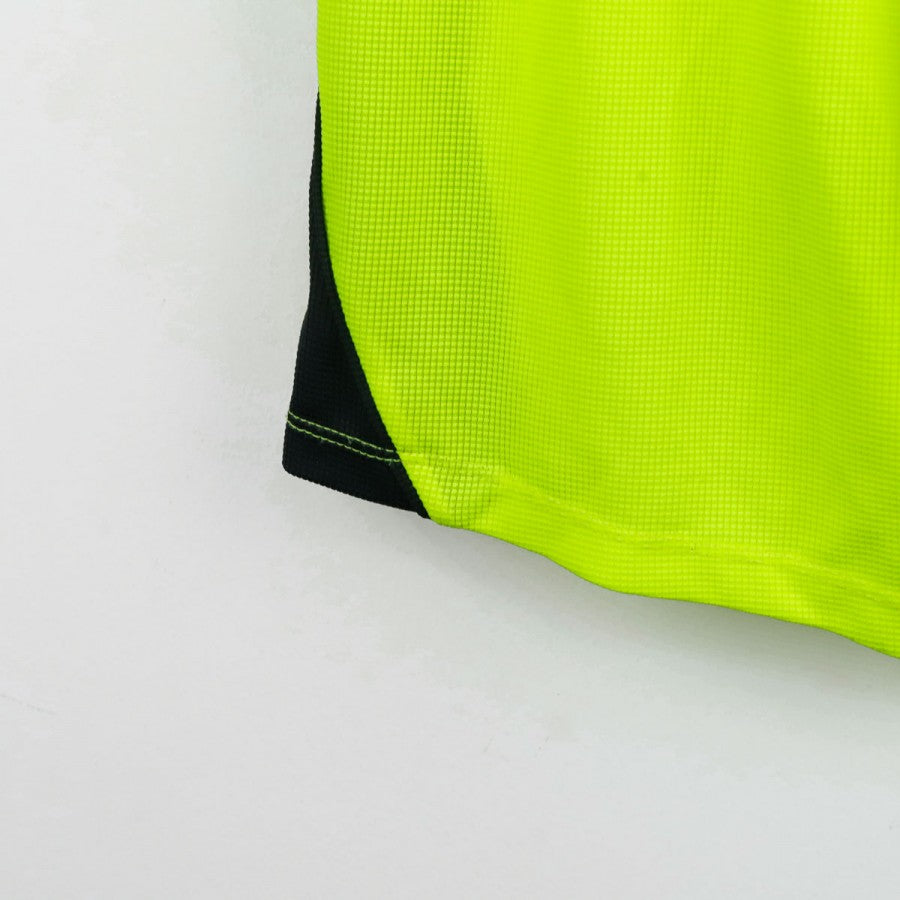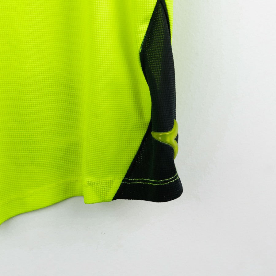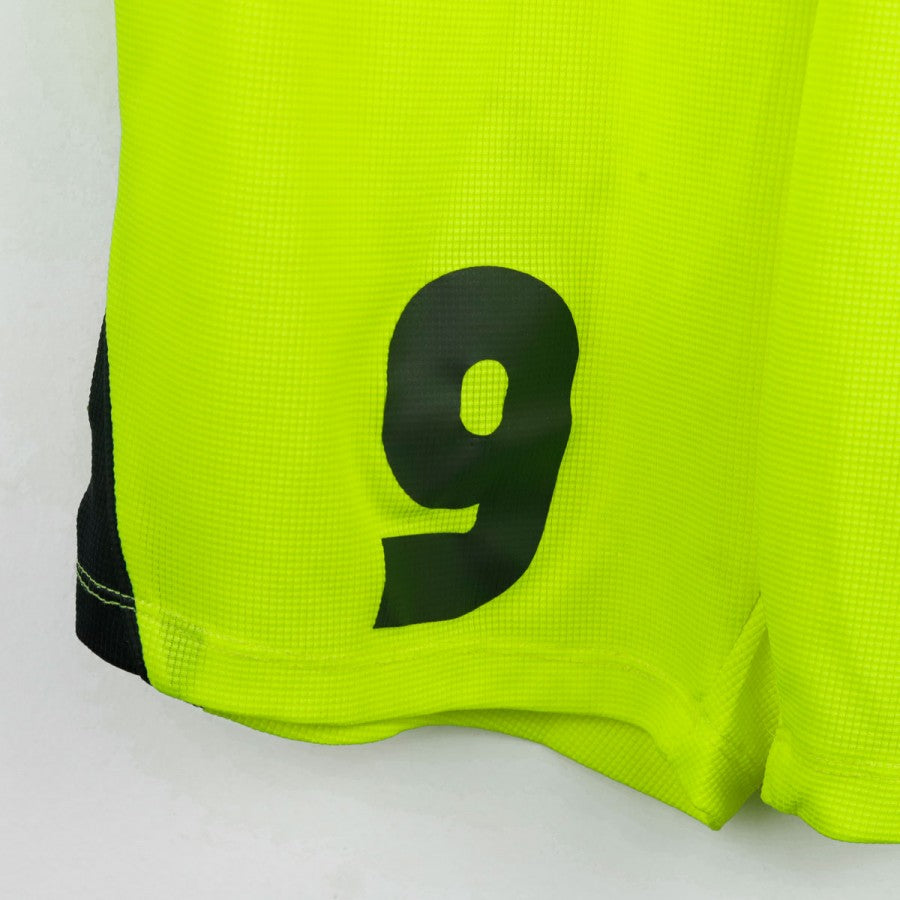 Pantaloncini third del Napoli stagione 2002/2003, prodotti da Diadora. Modello ufficiale da gara, colore giallo fluo con inserti neri laterali. Logo Diadora ricamato, stemma SSC Napoli cucito sulla gamba. Numero 9 applicato in stampa. Taglia XL.
