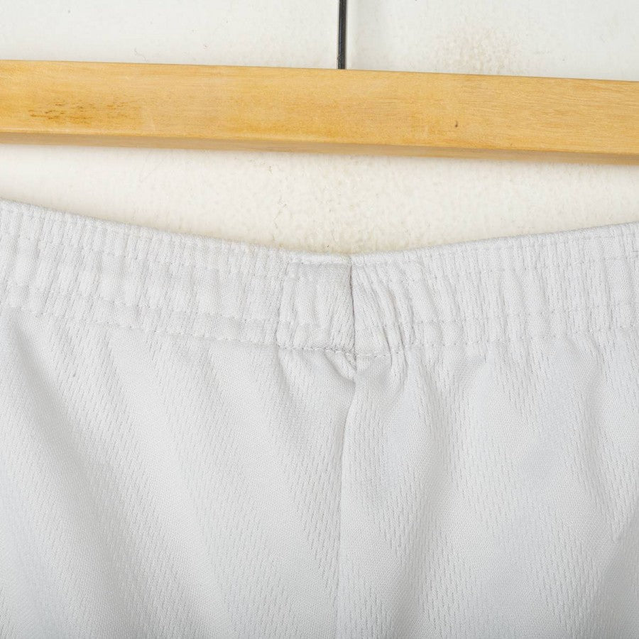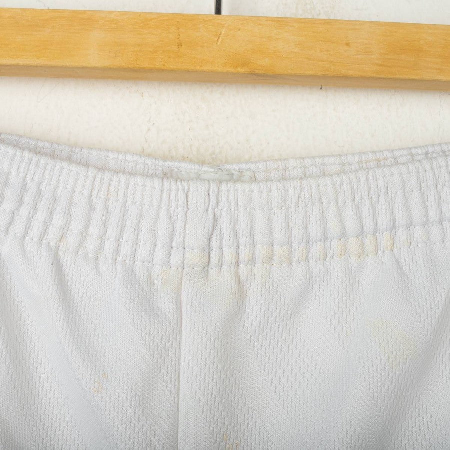 Pantaloncino da trasferta dell'Inter stagione 1996/1997, prodotto da Umbro. Colore bianco con fascia diagonale nera e blu sul fronte. Logo Umbro ricamato in blu e stemma Inter cucito con stella dorata. Design con motivo geometrico tono su tono. Elastico in vita. Taglia L.