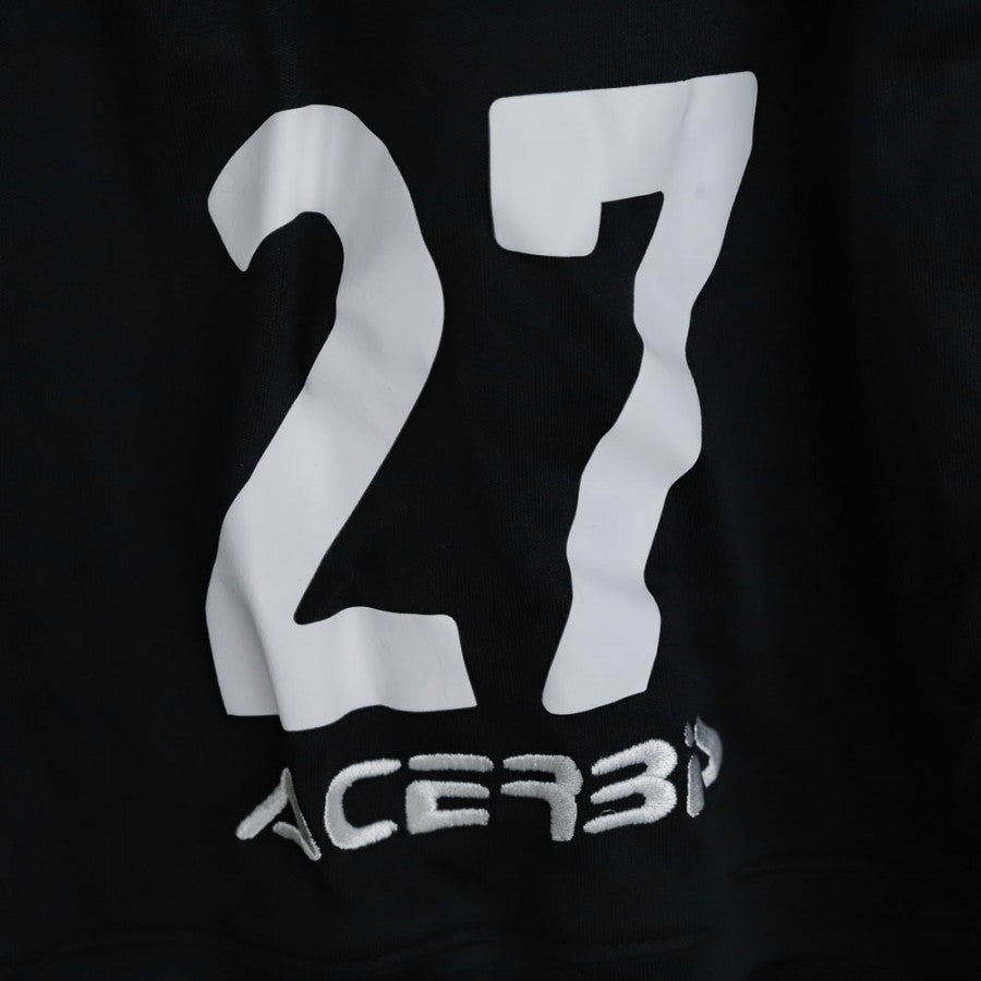Modello di colore nero con elastico in vita, presenta lo stemma della squadra sulla gamba destra, il logo dello sponsor tecnico Acerbis sulla gamba sinistra e il numero 27.