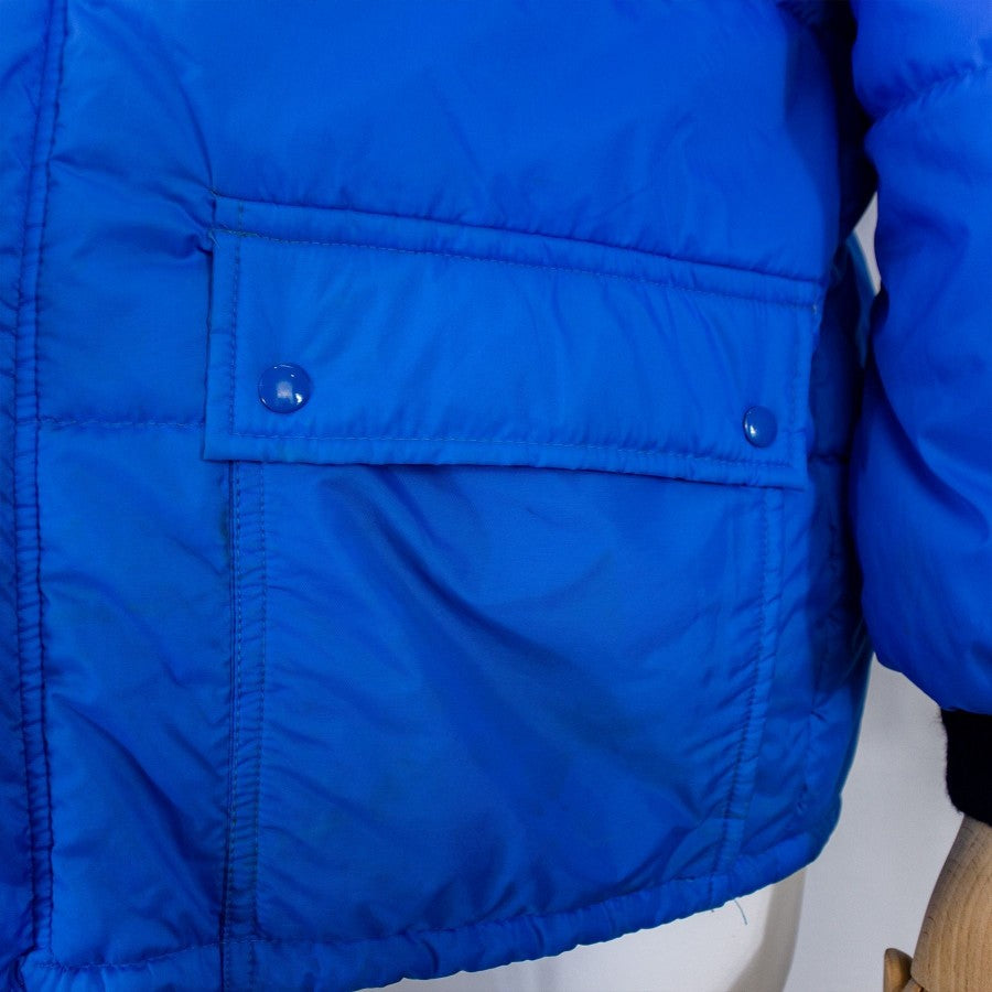 La giacca si presenta in ottime condizioni dal punto di vista del tessuto. Il colore blu non ha subito danni dal tempo ed è brillante come al tempo.