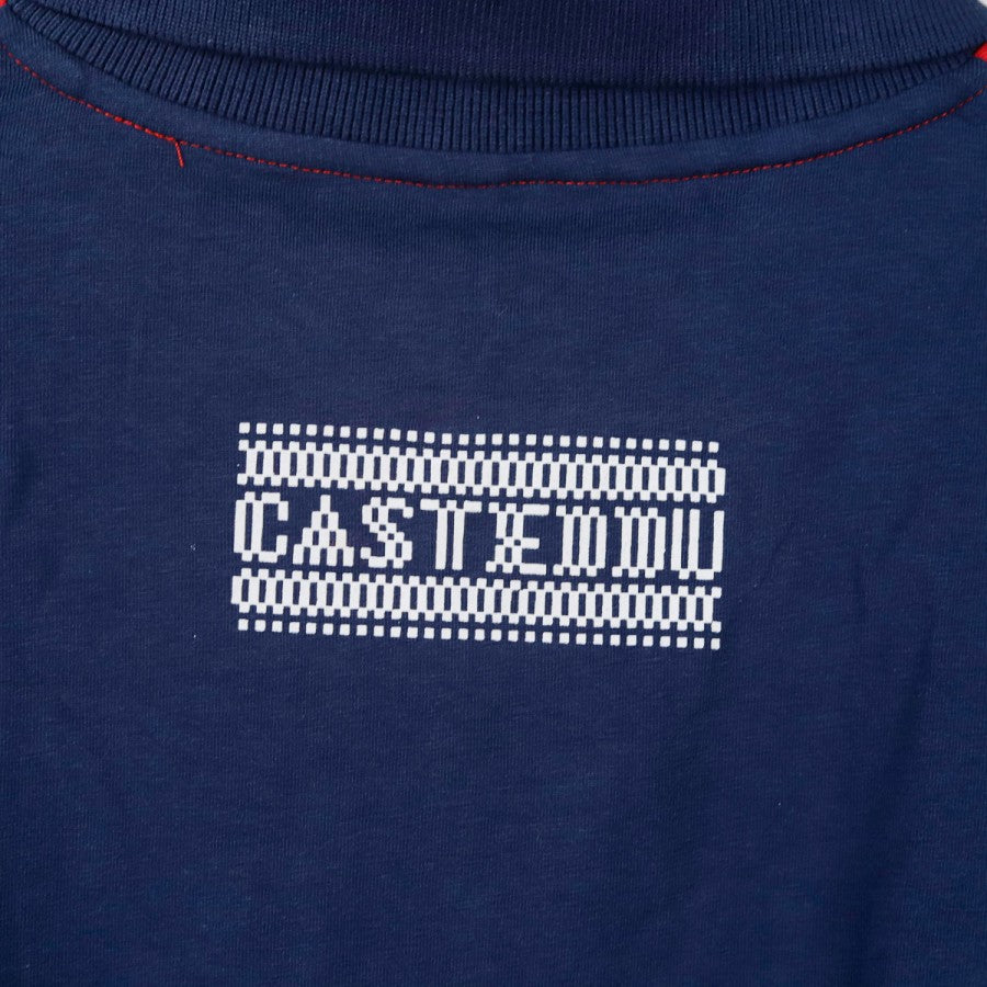 Polo ufficiale del Cagliari realizzata da Eye Sport per la stagione 2022/2023. Il design elegante presenta una base blu con dettagli rossi sulle spalle e sul colletto. Sul petto è presente il simbolo dei quattro mori, emblema della Sardegna, insieme al logo del brand Eye Sport. Sul retro compare la scritta "Casteddu", richiamo alla tradizione locale e alla passione della tifoseria rossoblù.