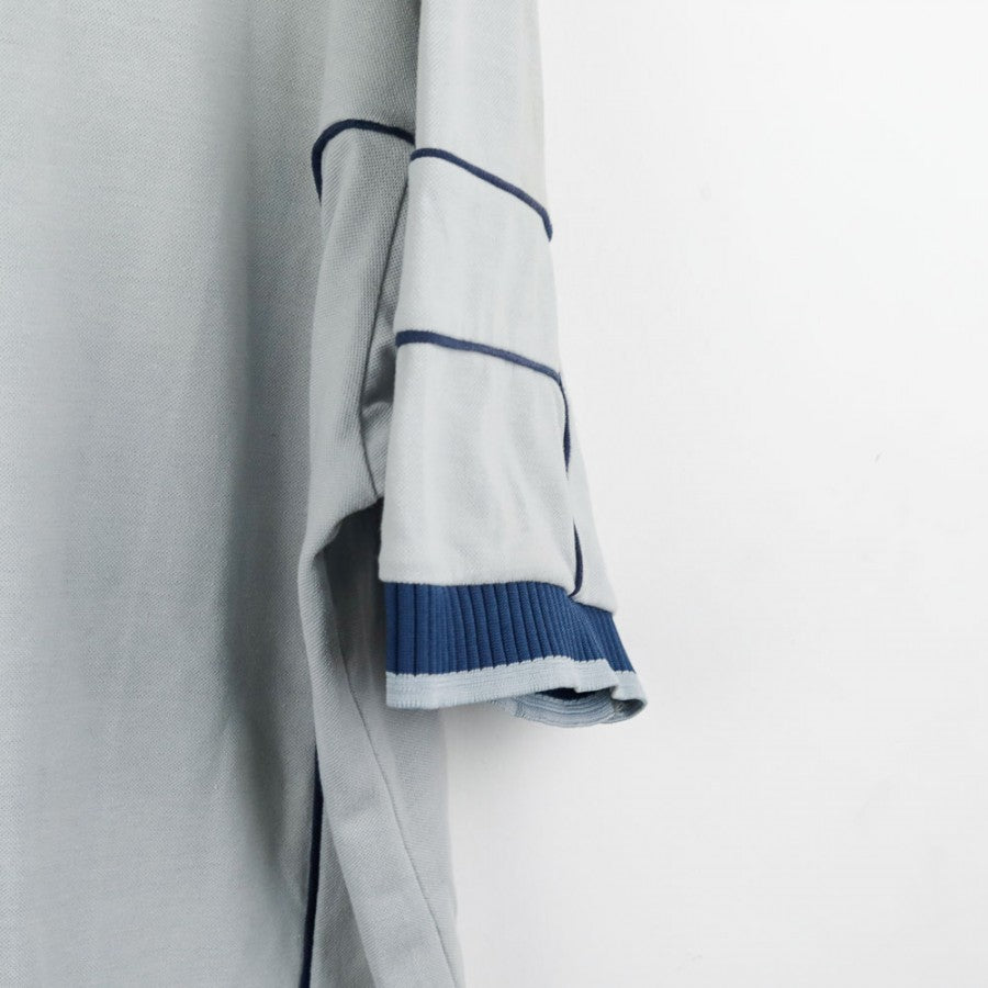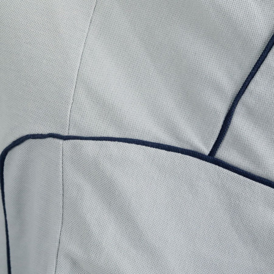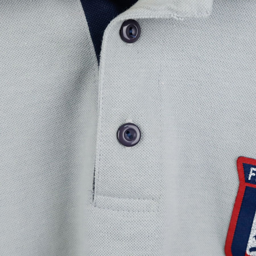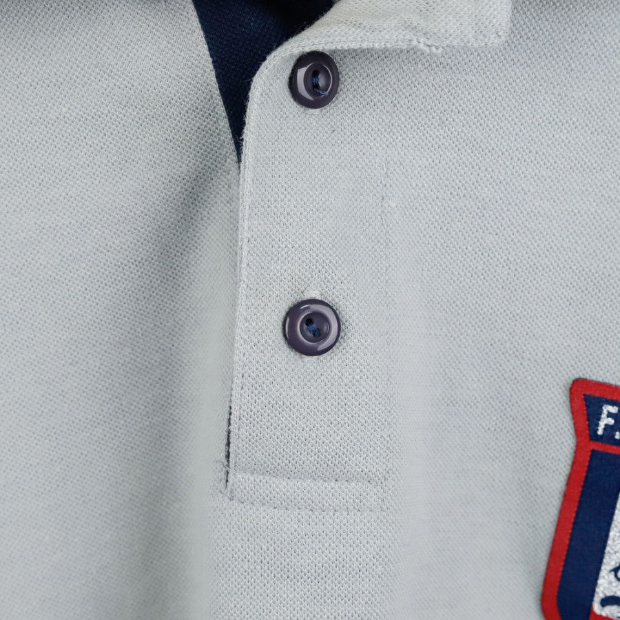 Polo ufficiale del Crotone realizzata da Zeus per la stagione 2005/2006. Modello di colore grigio con dettagli blu navy su colletto, maniche e bordi. Il logo Zeus è ricamato sul petto e sul retro, mentre lo stemma del Crotone è cucito sul lato sinistro del petto. Taglia XL.