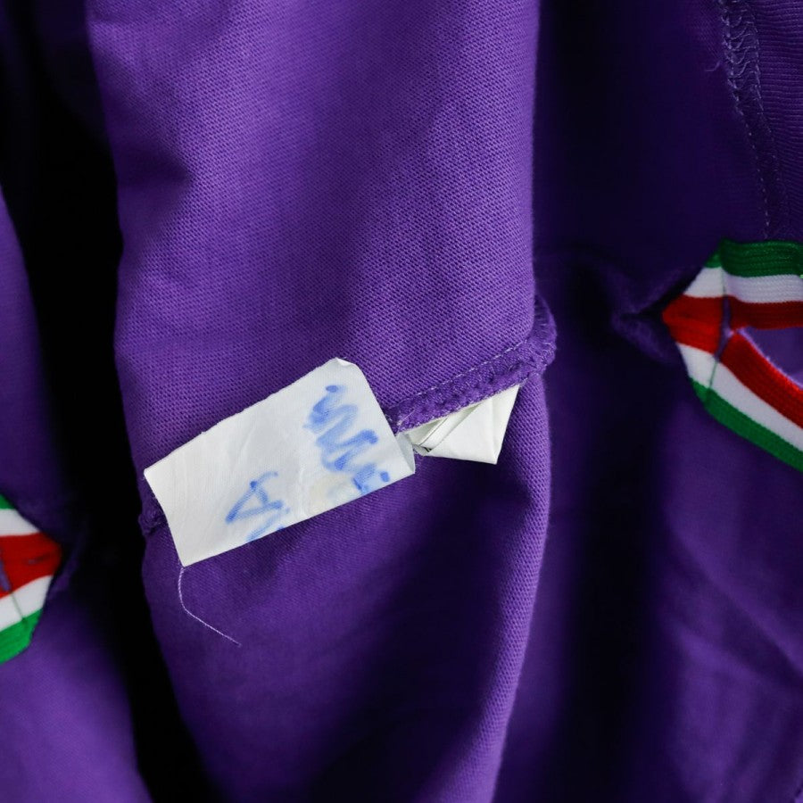 Polo ufficiale ACF Fiorentina stagione 2011/2012 realizzata da Lotto. Il colore viola iconico del club domina il design, arricchito da dettagli tricolore all'interno del colletto bianco a contrasto. Sul petto troviamo il logo Lotto, lo sponsor tecnico, e il marchio Mazda, sponsor commerciale della stagione. Lo stemma della Fiorentina è cucito sul cuore, mentre la scritta “ACF Fiorentina” è ricamata sul lato destro. Il logo Lotto è inoltre presente sulle maniche. Taglia indicata come “M” sull'etichetta interna.