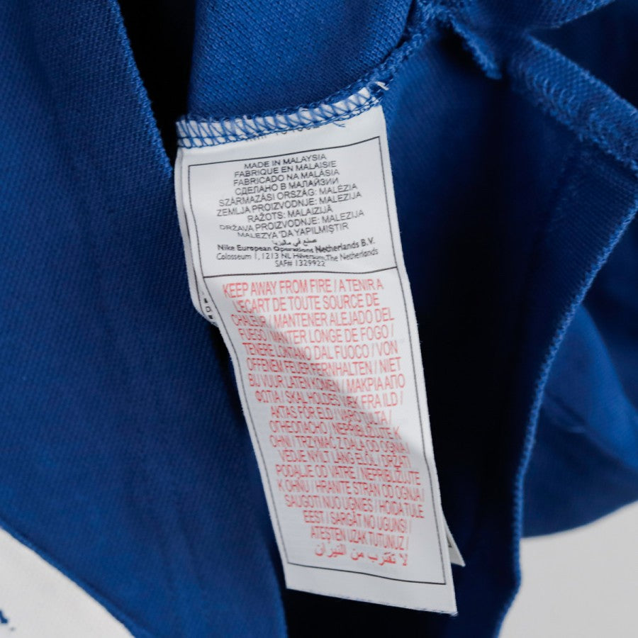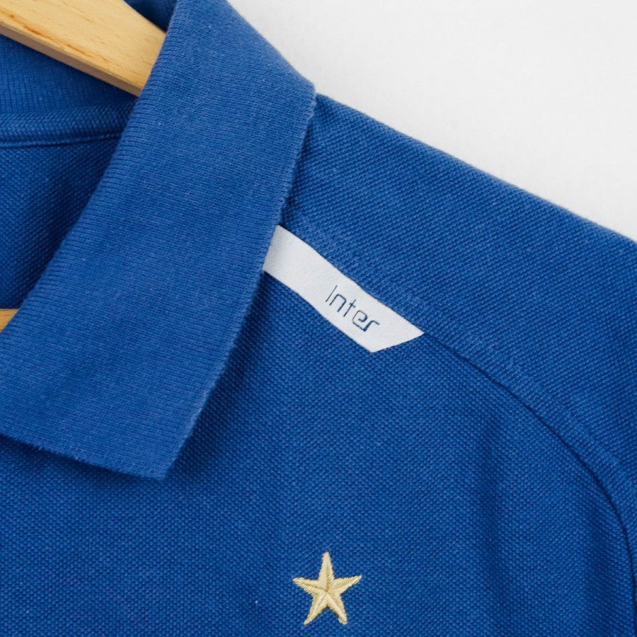 Polo Inter Nike 2008/2009, taglia M, creata dallo sponsor tecnico Nike per celebrare i 100 anni del club nerazzurro. La polo è realizzata in blu intenso con colletto a tre bottoni e presenta lo swoosh bianco sul petto accanto allo stemma dell'Inter con la speciale dicitura “1908-2008 100 Anni Inter” in oro. Sul retro, sotto il colletto, è ricamato un piccolo logo Nike a scudetto. Utilizzata come parte della linea casual ufficiale nella stagione 2008/09, questa polo è legata a un'annata storica in cui l'Inter, allenata da José Mourinho al suo esordio sulla panchina nerazzurra, vinse il campionato dominando la Serie A.