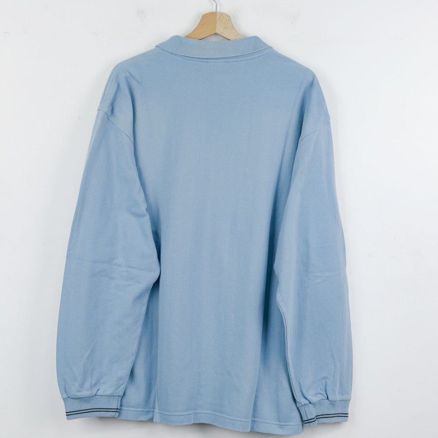 Polo ufficiale dell'Inter per la stagione 1999/2000, realizzata dallo sponsor tecnico Nike con lo storico sponsor commerciale Pirelli. Di colore azzurro chiaro, presenta il logo Nike ricamato sul lato destro del petto e il logo dell'Inter applicato lato cuore, accompagnato dalla scritta Pirelli in bianco. Con maniche lunghe e un elegante colletto con apertura a "V", questa polo, in taglia L, è un pezzo raro e ricercato, perfetto per collezionisti e tifosi nerazzurri.