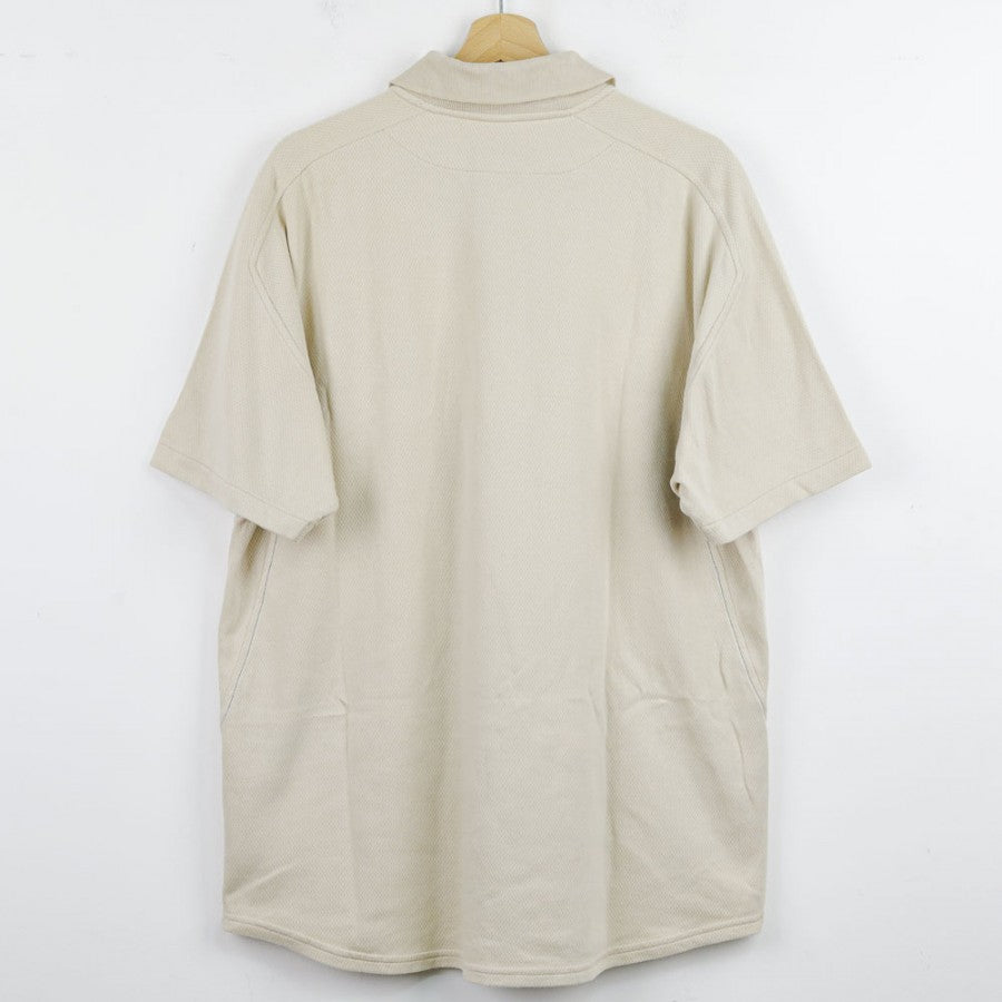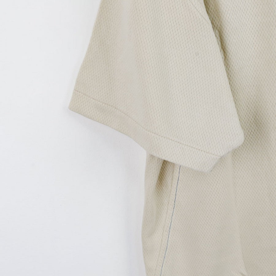 Polo ufficiale dell'Inter, stagione 2002/2003, prodotta dallo sponsor tecnico Nike. Di colore beige chiaro, questa polo presenta lo stemma dell'Inter sul lato cuore, accanto allo sponsor commerciale Pirelli in nero. Il logo Nike è ricamato sul petto a destra, completando il design pulito e semplice di questo capo, perfetto per i tifosi nerazzurri e i collezionisti.