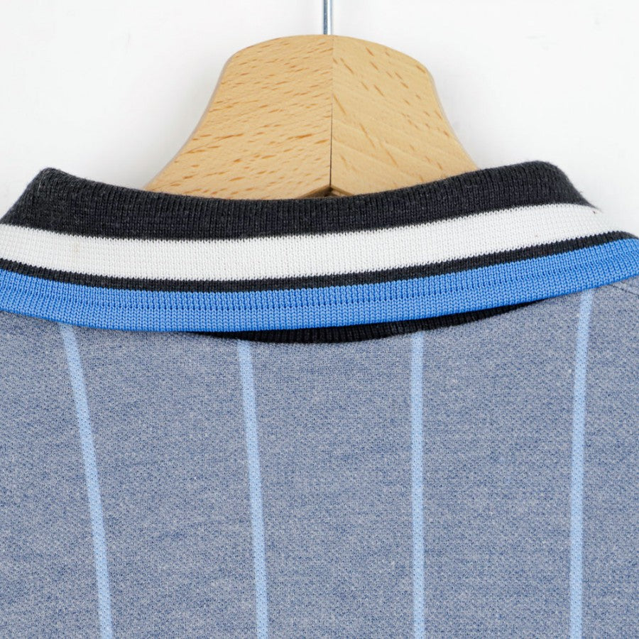 Polo FC Inter realizzata da Umbro per la stagione 1995/1996. Di colore azzurro presenta delle righine verticali di colore celeste. Il colletto nerazzurro, i colori tradizionali della società, presenta una chiusura con zip. Ricamati sul petto lo stemma del club e lo sponsor tecnico Umbro. Taglia L.