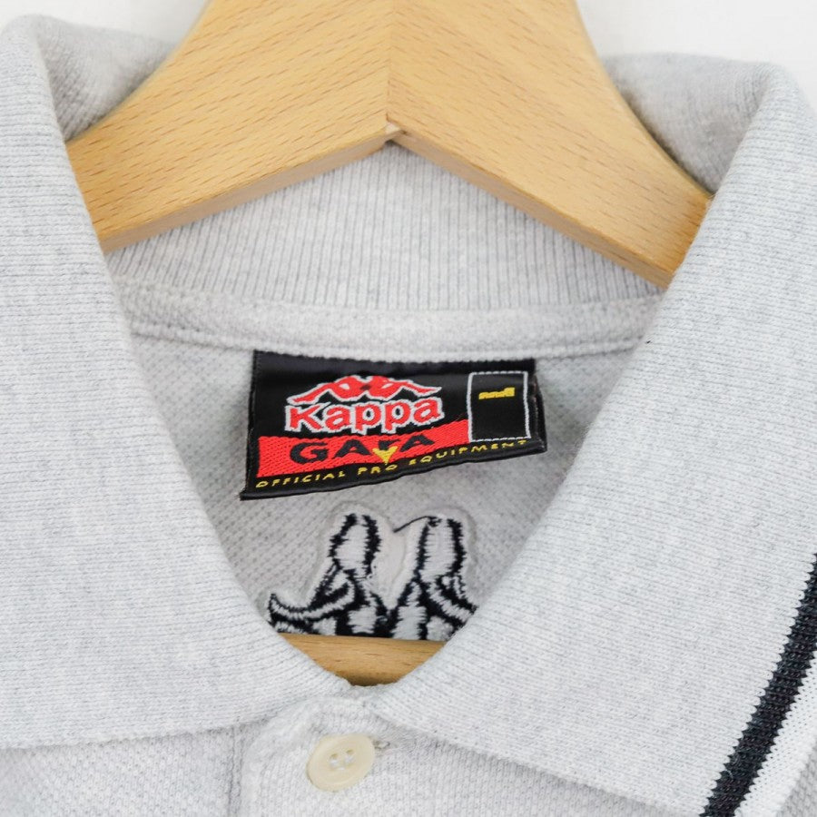 Polo ufficiale della Juventus stagione 1999/2000 realizzata da Kappa. Il capo è in cotone grigio chiaro con maniche corte, colletto e bordo maniche rifiniti con profilo nero. Sul petto sono presenti il logo Kappa, la scritta Juventus, lo sponsor commerciale D+ (Libertà Digitale) e lo stemma del club con due stelle. Sul retro, sotto il colletto, è ricamato il logo Kappa in nero. La taglia è L, come indicato sull'etichetta interna della linea “Kappa Gara – Official Pro Equipment”.