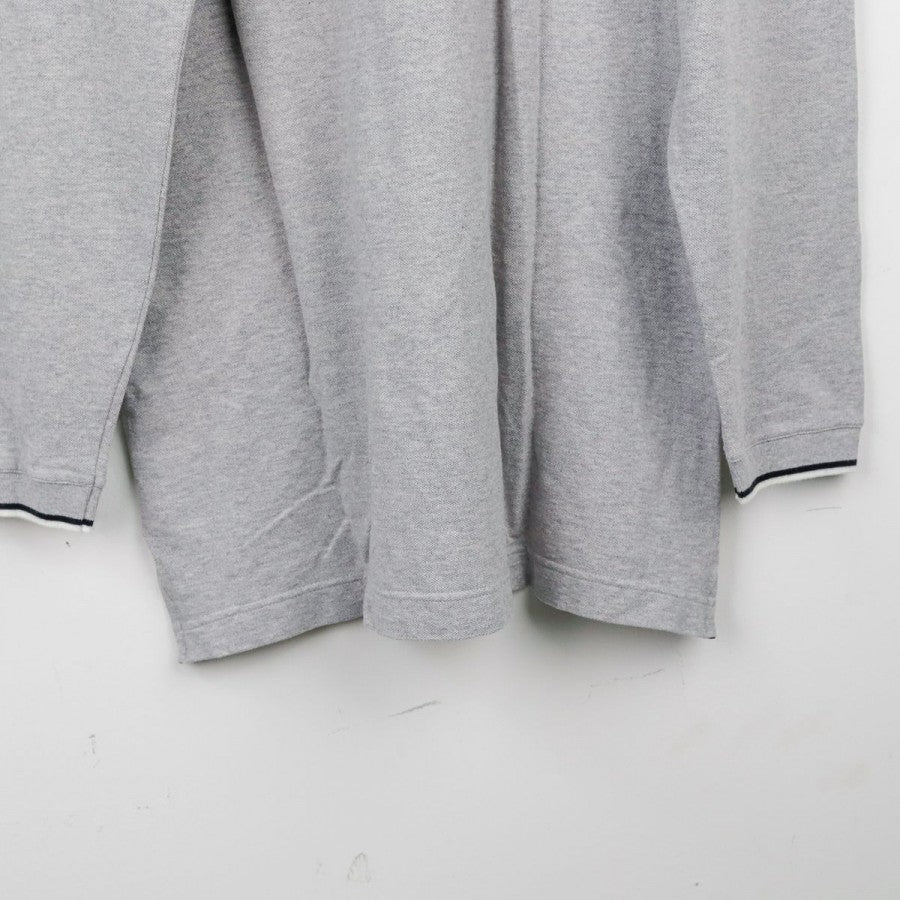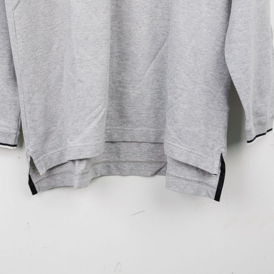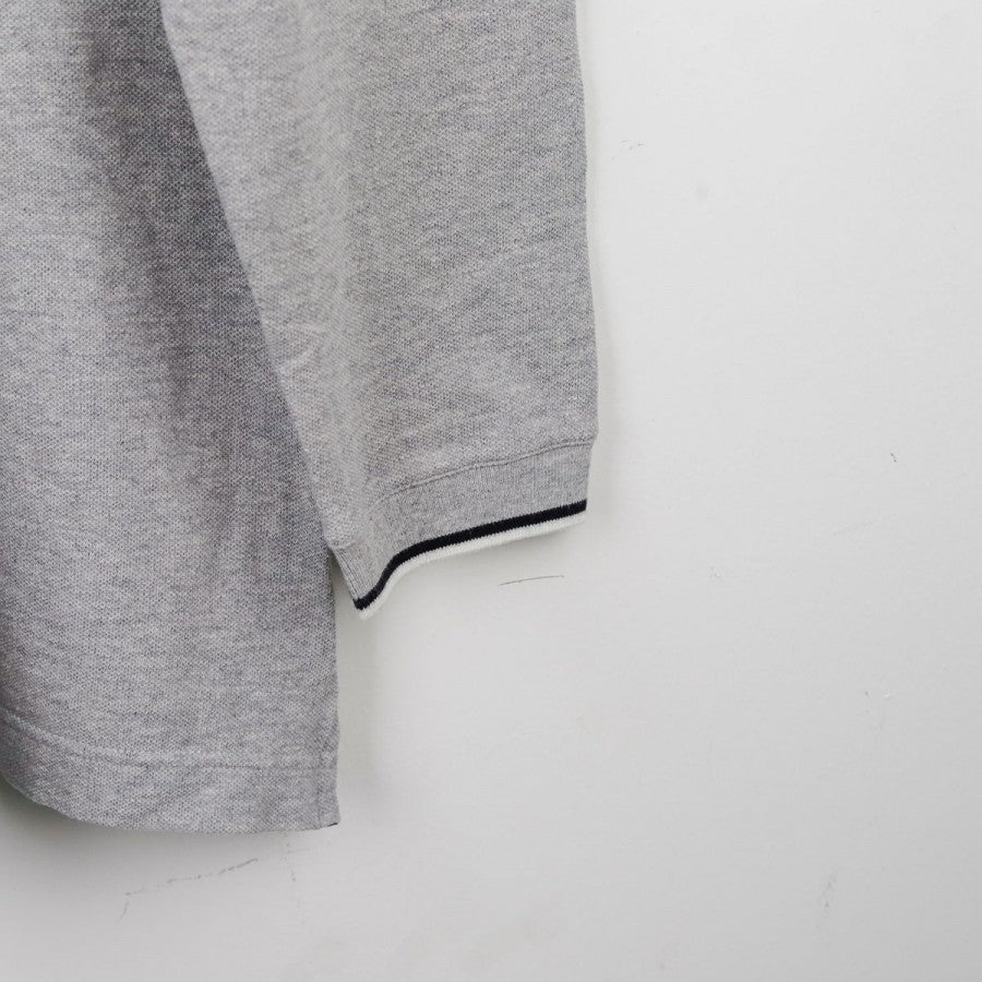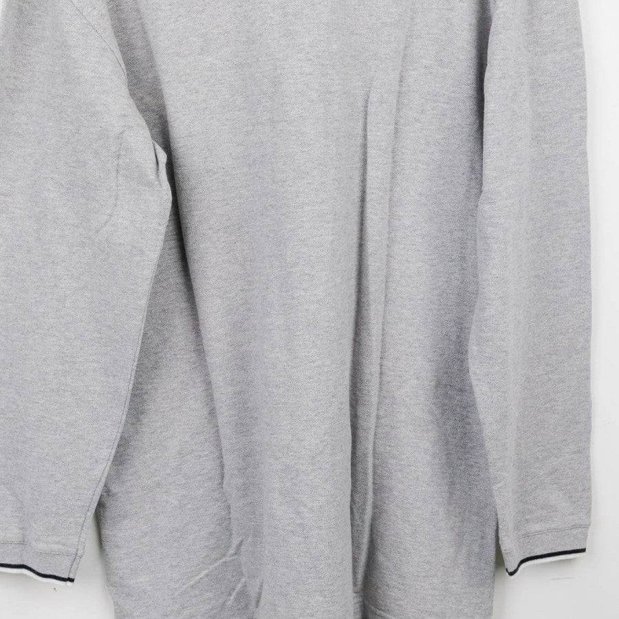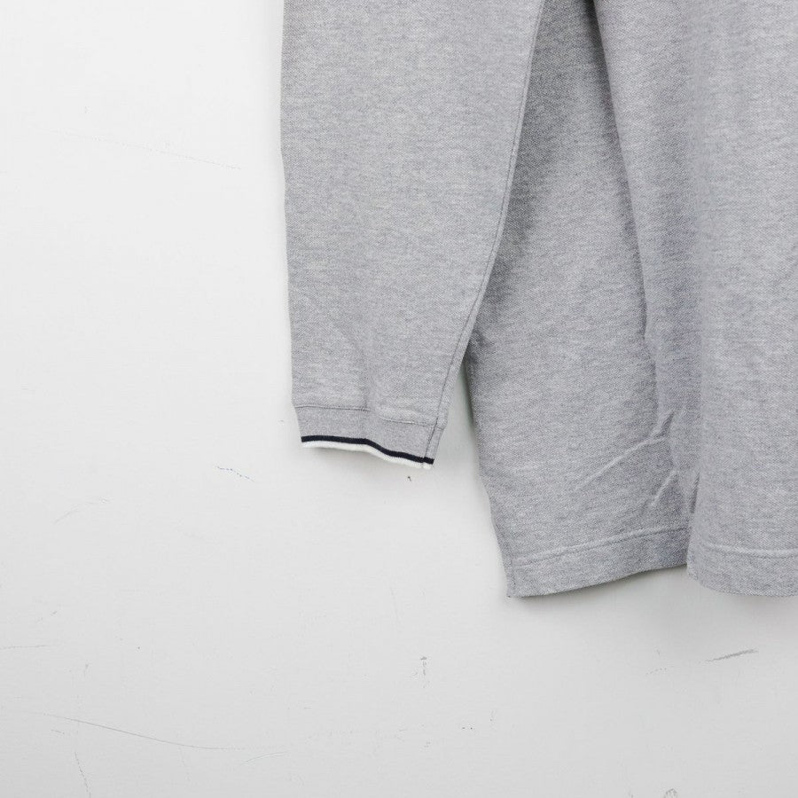 Polo ufficiale a maniche lunghe della Juventus per la stagione 1999/2000, realizzata da Kappa. Il capo è in cotone grigio chiaro con colletto a costine e bordo maniche rifiniti da una doppia riga nera. Sul petto si trovano il logo Kappa, la scritta Juventus, lo sponsor commerciale D+ (Libertà Digitale) e lo stemma societario con due stelle. Sul retro è visibile il logo Kappa ricamato sotto il colletto. Taglia: L, come da etichetta della linea “Kappa Gara – Official Pro Equipment”.