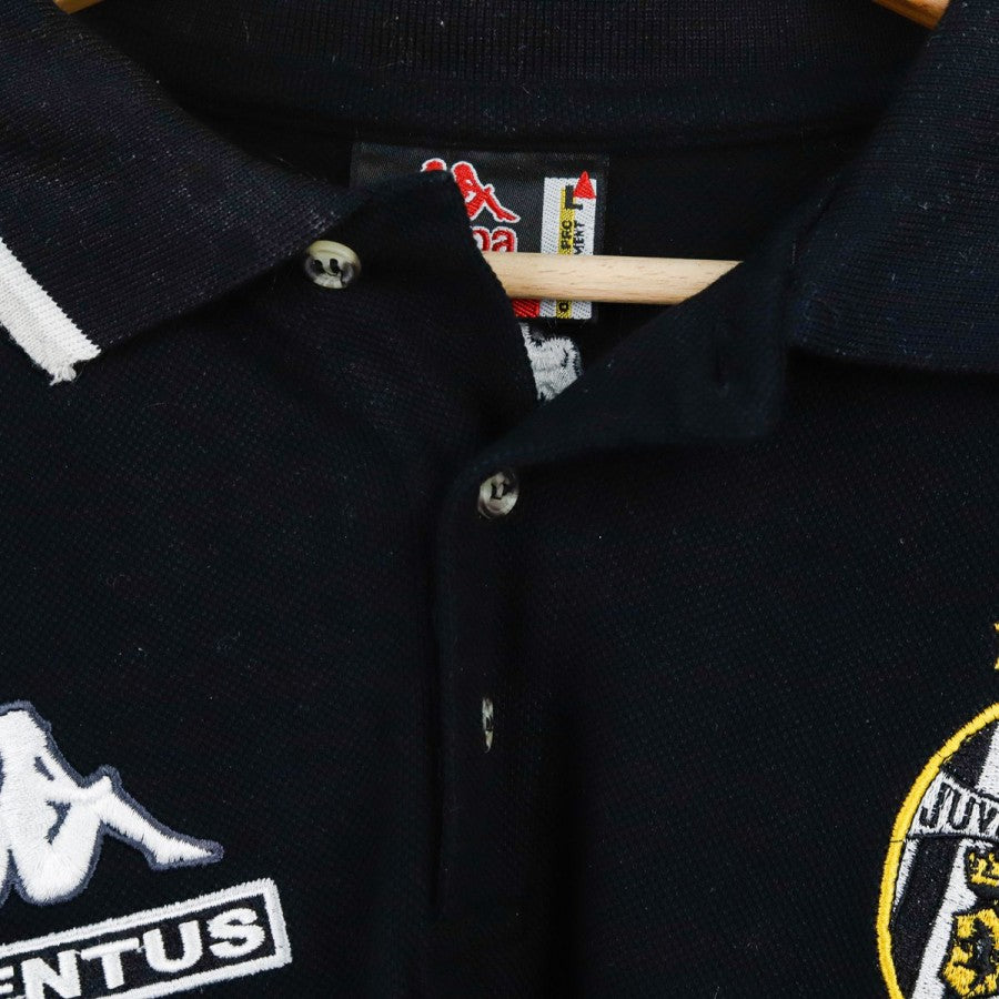 Polo ufficiale a maniche lunghe della Juventus per la stagione 1999/2000 prodotta da Kappa. Il capo è interamente nero, con dettagli bianchi su colletto e polsini. Sul petto sono presenti il logo Kappa con scritta Juventus, lo sponsor commerciale D+ (Libertà Digitale) e lo stemma del club con due stelle. Il retro è sobrio, con il logo Kappa bianco ricamato sotto il colletto. L'etichetta interna appartiene alla linea “Kappa Gara – Official Pro Equipment”. Taglia visibile: L.