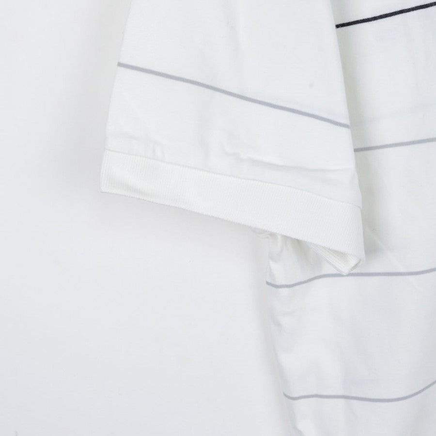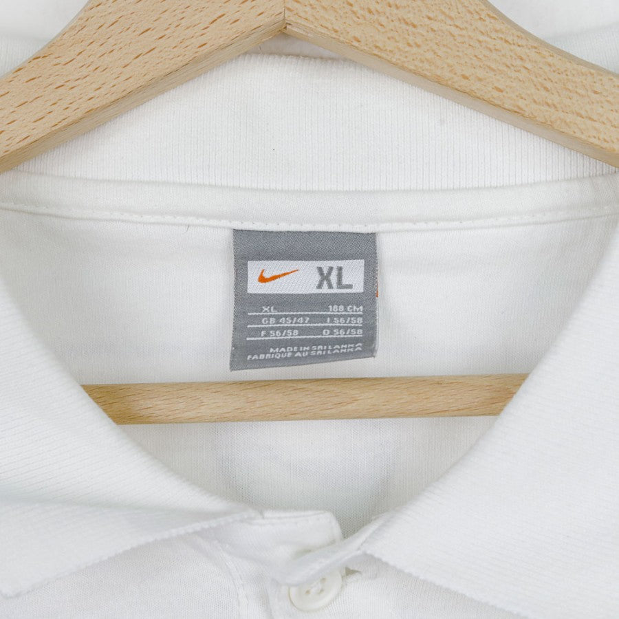 Polo ufficiale della Juventus, stagione 2008/2009, prodotta dallo sponsor tecnico Nike. Questa polo bianca presenta sottili linee orizzontali grigie lungo tutta la superficie. Il logo Nike è ricamato sul lato destro del petto, mentre lo stemma della Juventus è cucito sul lato sinistro, affiancato dallo sponsor commerciale New Holland. Sulla manica destra è presente la scritta Juventus, che aggiunge un tocco distintivo. Il colletto classico con chiusura a bottoni rende questa polo un capo elegante e sportivo, ideale per i tifosi che desiderano rappresentare il club bianconero anche fuori dal campo.