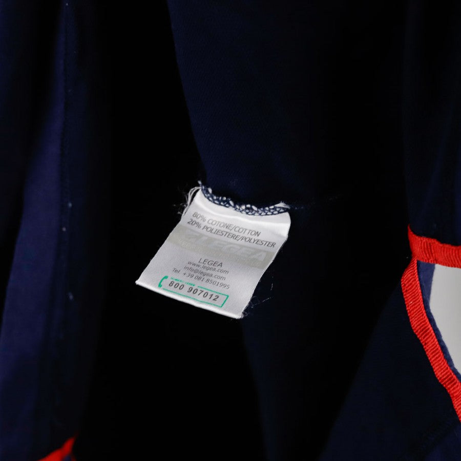 Polo ufficiale del Livorno realizzata da Legea per la stagione 2006/2007. Il design è caratterizzato da un elegante blu navy con dettagli rossi sul colletto e sui bottoni. Sul petto sono ricamati il logo Legea e lo stemma del club, simbolo di una stagione importante per la squadra toscana. La polo è a maniche lunghe e presenta una vestibilità comoda. Taglia XL.