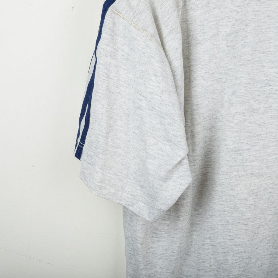 Polo Adidas del Monza stagione 1993/1994. Modello in cotone grigio mélange con classico design anni '90. Logo Adidas ricamato in blu lato destro e stemma Monza Calcio applicato lato cuore. Colletto a polo con chiusura a due bottoni, maniche corte con iconiche tre strisce blu Adidas sulle spalle. Vestibilità regolare.