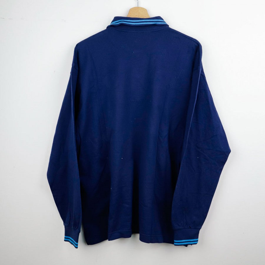 Polo della SSC Napoli realizzata dallo sponsor tecnico Lotto. Internamente sono presenti etichette con la taglia XL. Modello a maniche lunghe di colore blu con inserti azzurri, colori che contraddistinguono la società partenopea. Lo sponsor tecnico Lotto è ricamato, così come lo stemma della società.