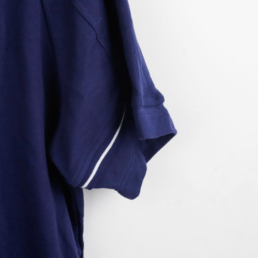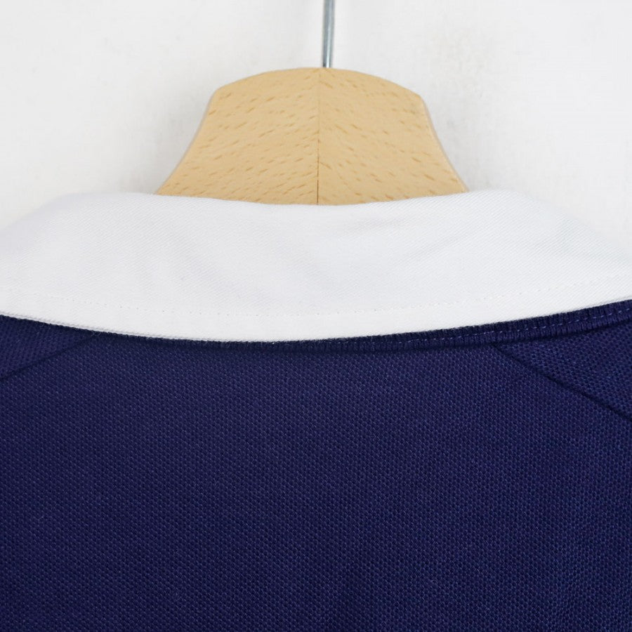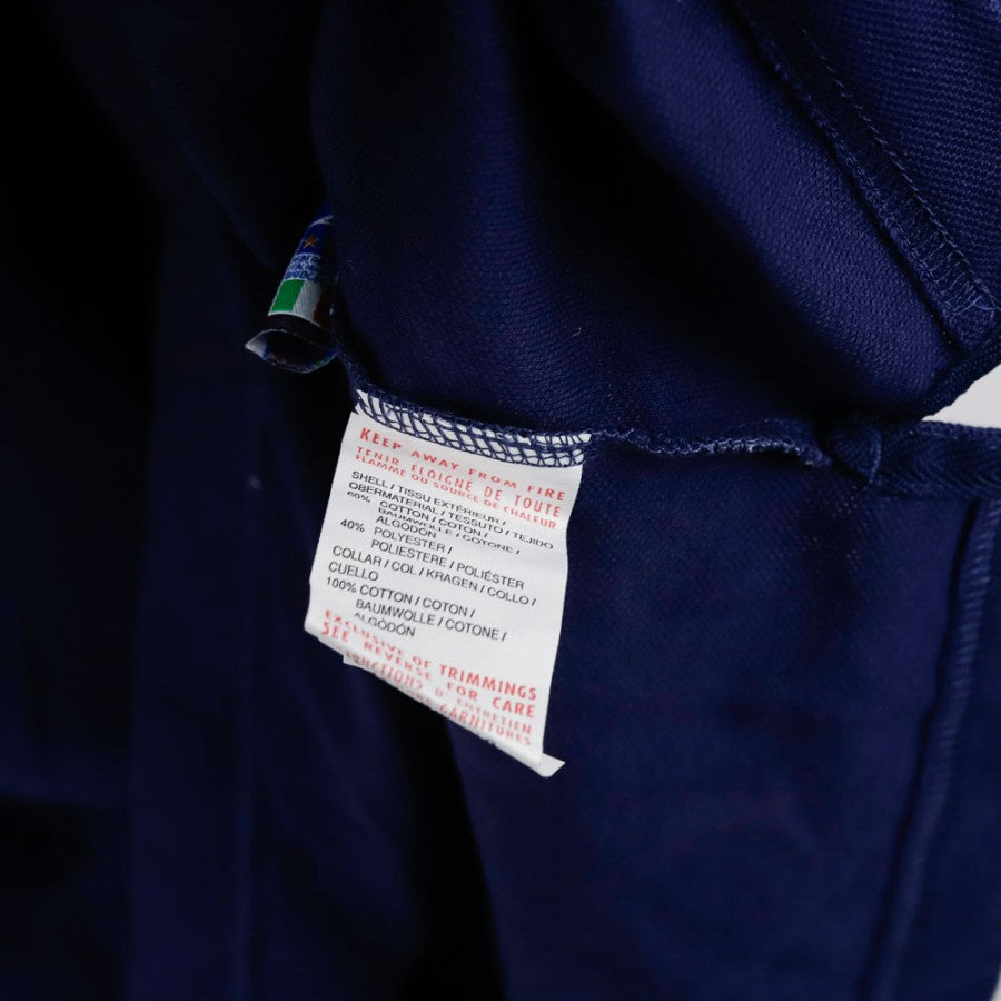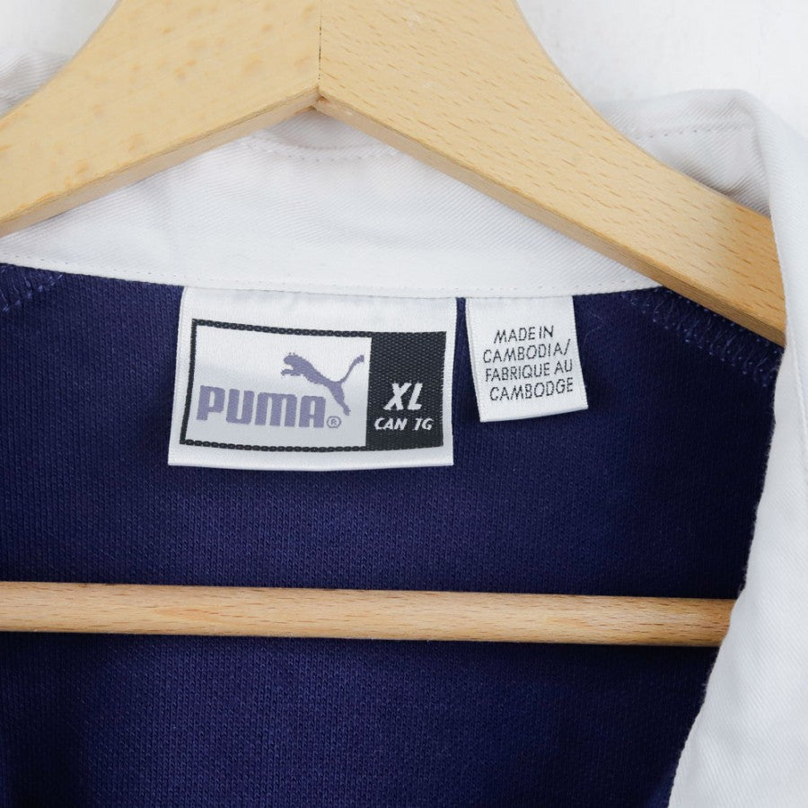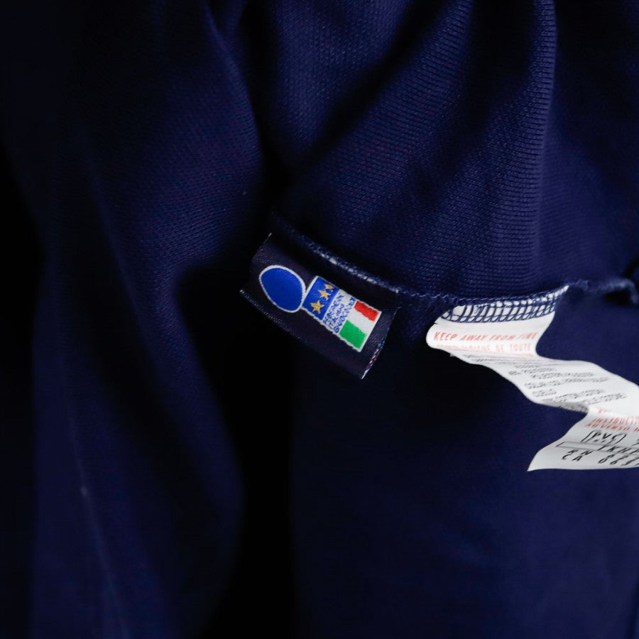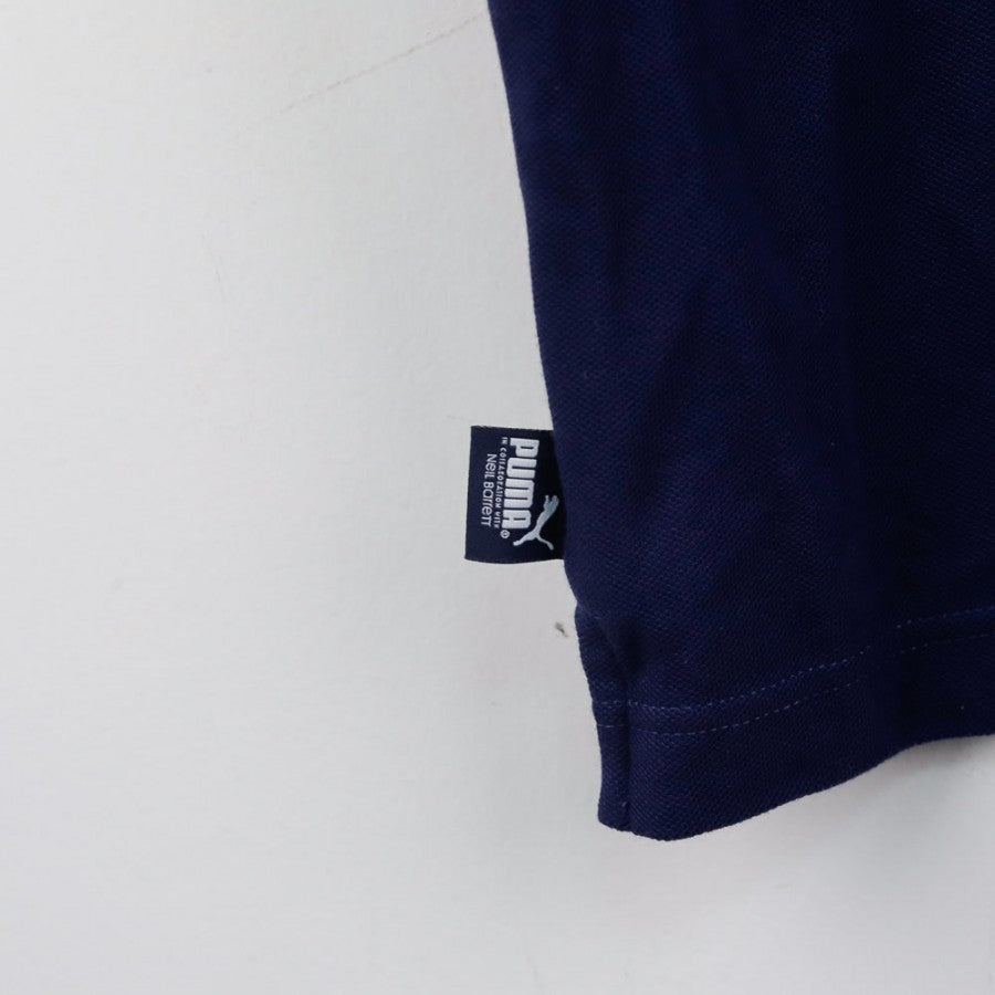 Polo ufficiale della Nazionale Italiana di calcio prodotta da Puma per la stagione 2003/2004. La maglia presenta un design classico con colletto bianco e base blu navy, con il logo Puma ricamato in oro e lo stemma della FIGC con lo Scudetto sul petto. Taglia XL.