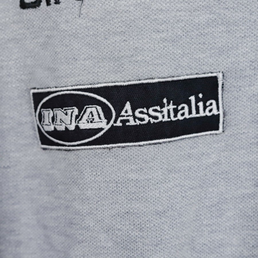 Polo della squadra AS Roma realizzata dallo sponsor tecnico Diadora per la stagione 1997/1998. La polo completamente grigia presenta abbottonatura al collo, lettering as Roma ricamato sotto il simbolo della Lupa, Logo dello sponsor tecnico Diadora e sponsor commerciale INA Assitalia ricamati sul petto. Maniche lunghe. Taglia M.