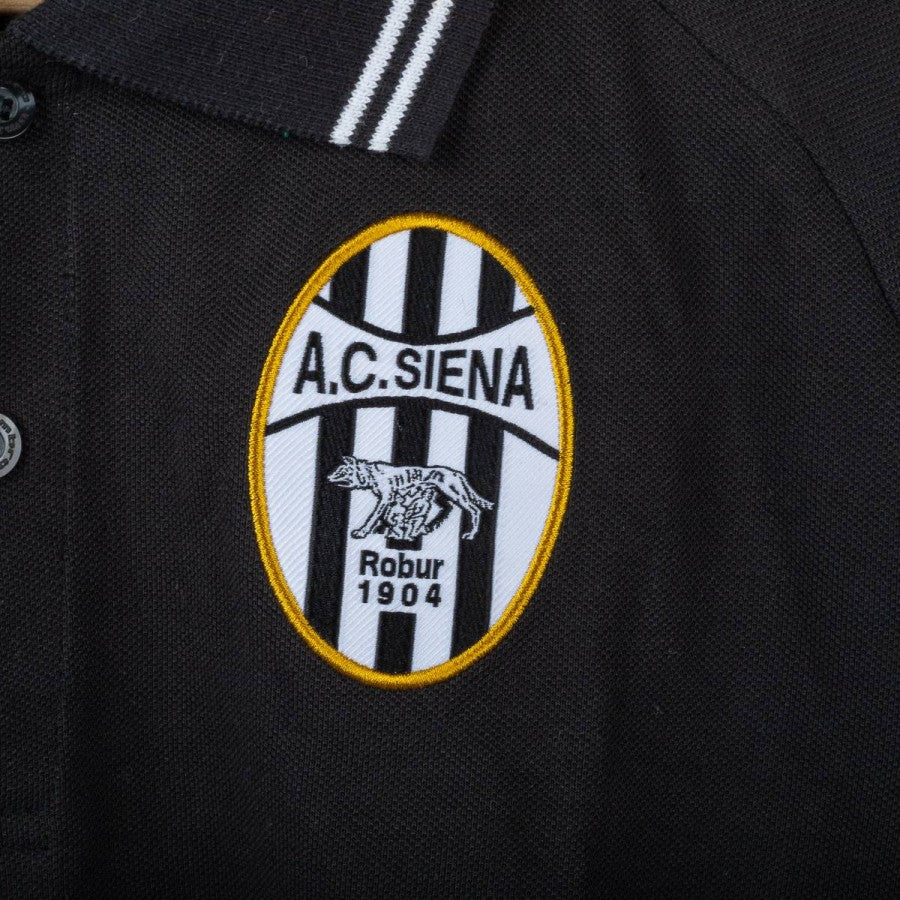 Polo ufficiale dell'AC Siena indossata nella stagione 2008/2009, prodotta da Umbro. Colore nero con colletto e polsini a manica lunga rifiniti da doppia riga bianca. Logo Umbro ricamato in bianco sul petto destro, sponsor Monte Paschi stampato in bianco al centro, stemma AC Siena ricamato lato cuore. Chiusura a due bottoni. Vestibilità regolare. Taglia L.