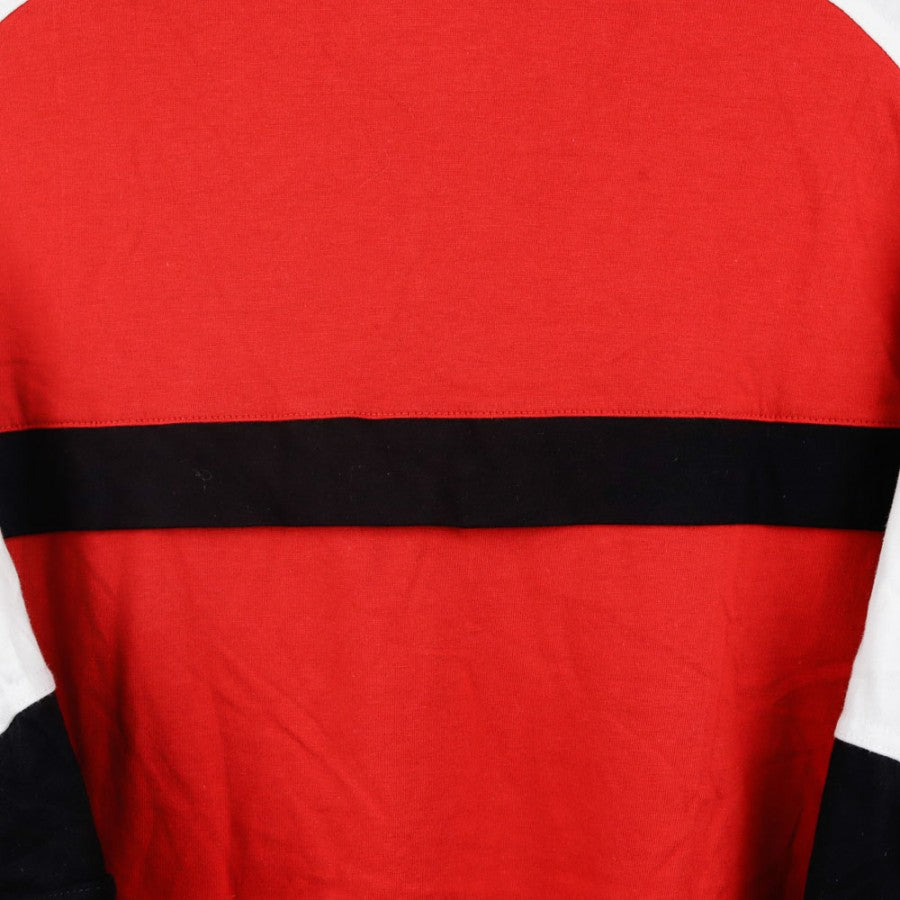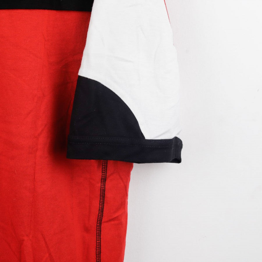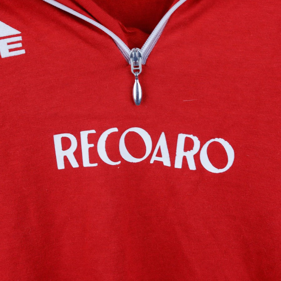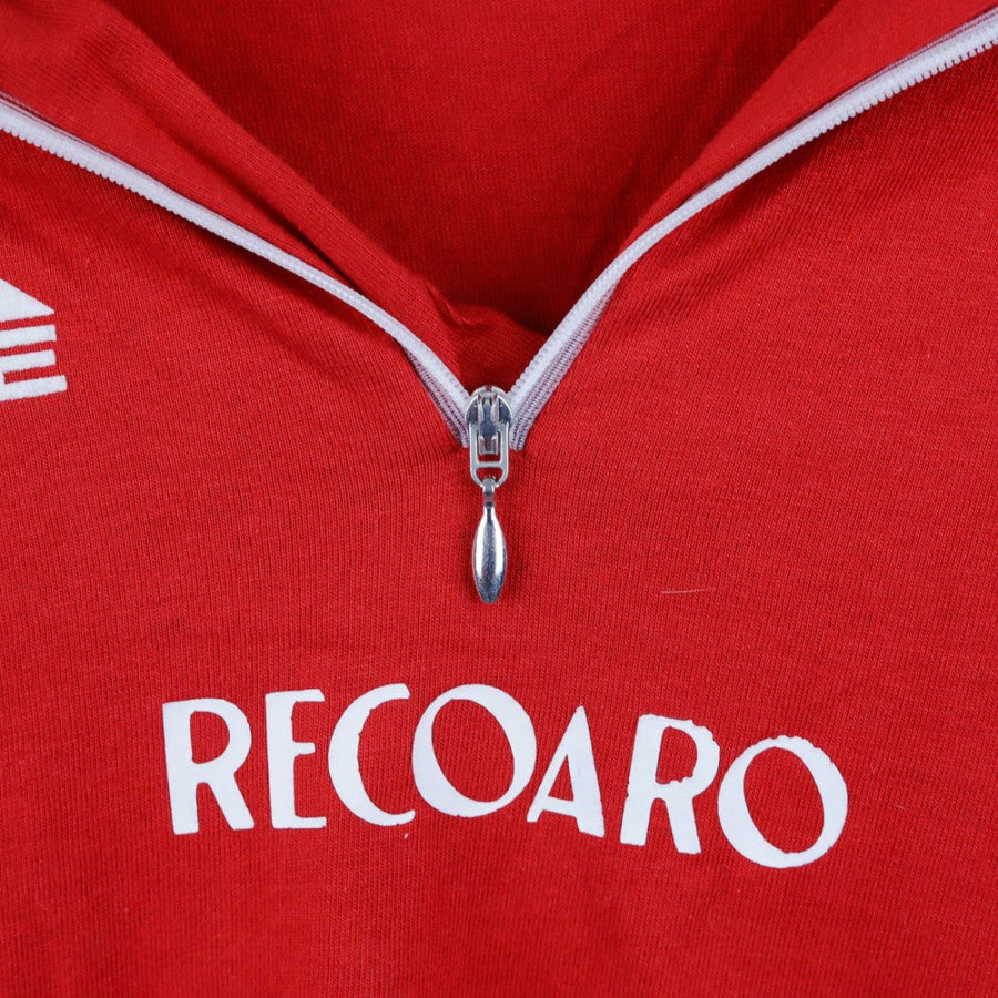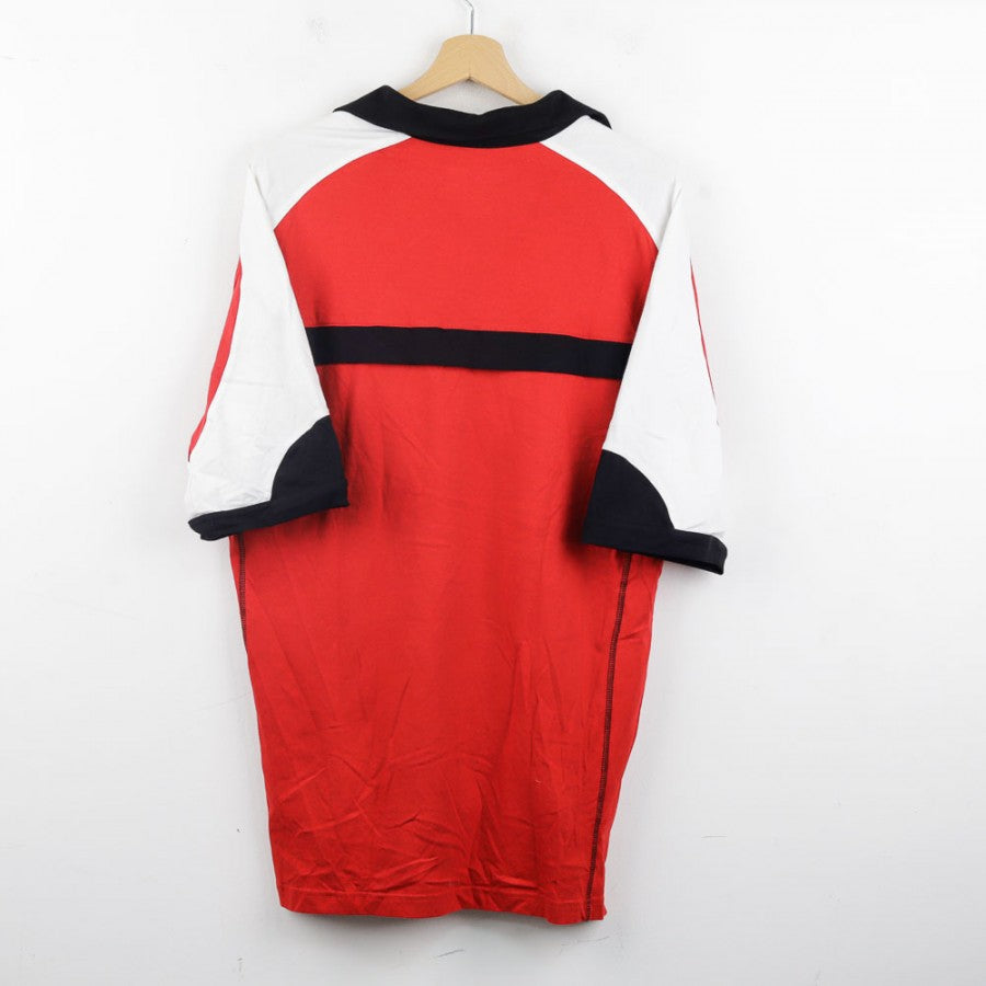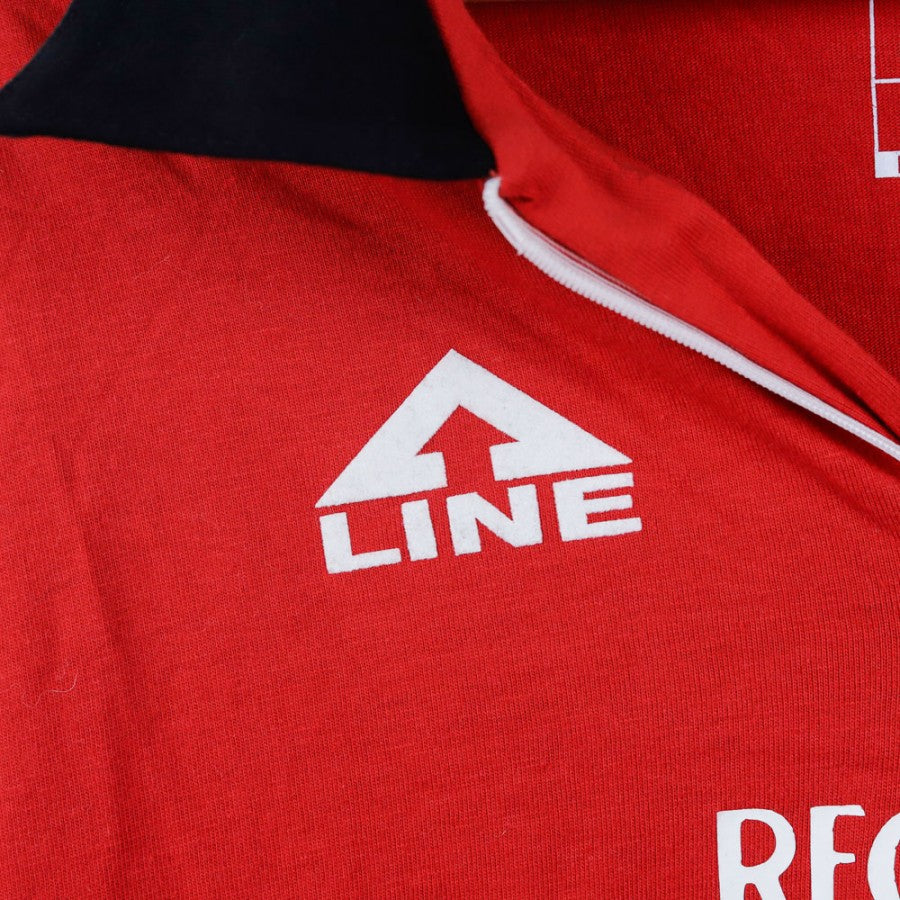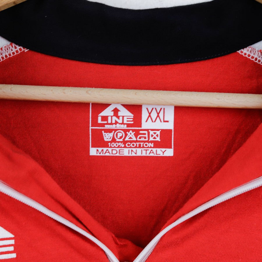 Polo ufficiale del Vicenza realizzata da A-Line per la stagione 2005/2006. Il design è caratterizzato dal classico colore rosso con dettagli bianchi e neri sulle maniche e sul colletto. Sul petto sono presenti il logo A-Line, lo stemma del Vicenza Calcio e il main sponsor Recoaro. Il modello presenta una chiusura a zip parziale sul colletto, conferendo un look sportivo e casual. Realizzata in 100% cotone, garantisce comfort e traspirabilità. Taglia XXL.