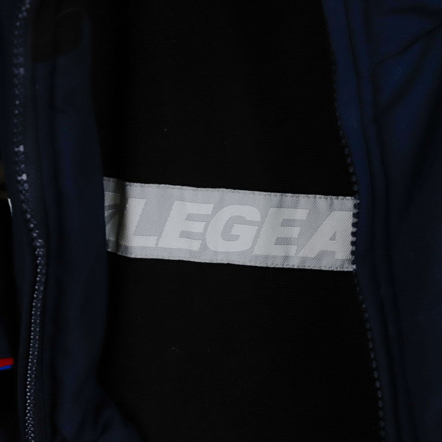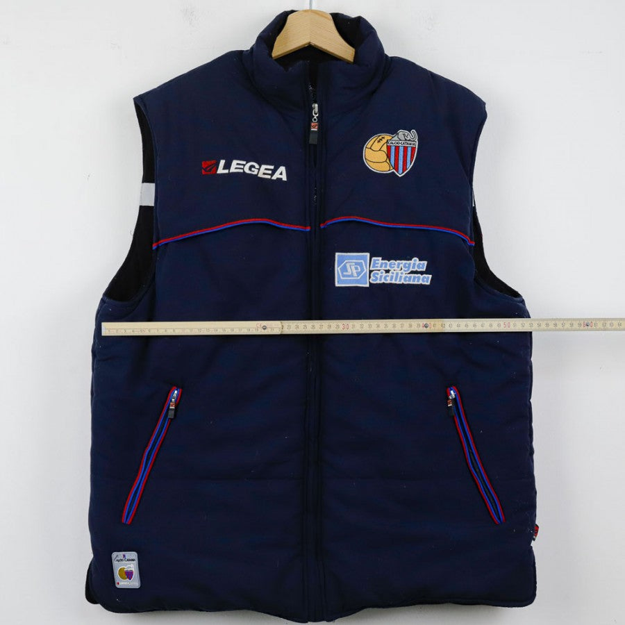 Smanicato ufficiale del Catania della stagione 2005/2006, prodotto dallo sponsor tecnico Legea. Il gilet, di colore blu scuro, presenta lo stemma del club sul petto, accompagnato dal logo Legea e dallo sponsor commerciale Energia Siciliana. Sul retro è presente una grande stampa del marchio Legea. Dotato di chiusura a zip e due tasche con dettagli in rosso e azzurro, questo capo è ideale per i tifosi e collezionisti del Catania.