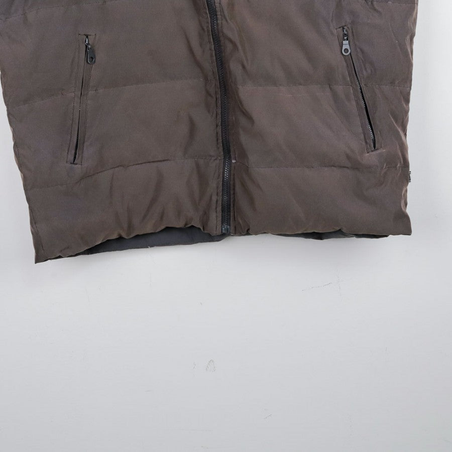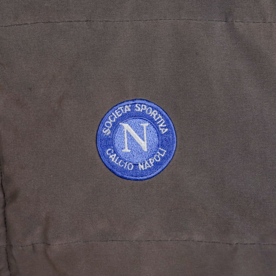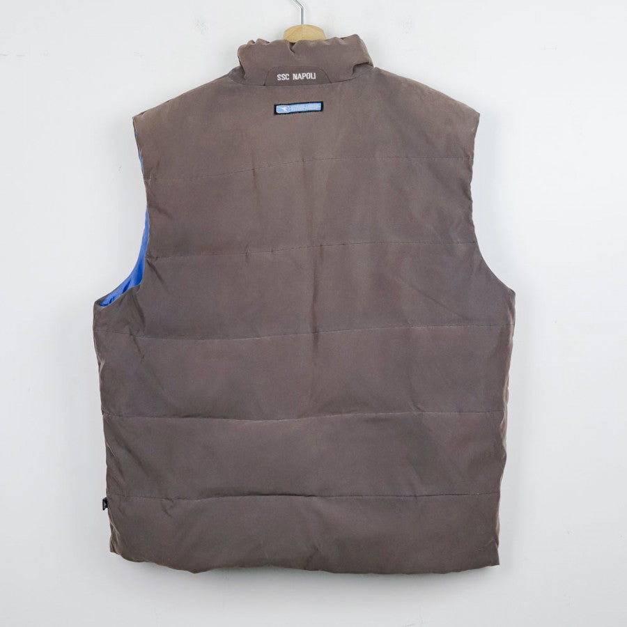 Smanicato ufficiale del Napoli, stagione 2001/2002, prodotto dallo sponsor tecnico Diadora. Il gilet è di colore marrone con interno celeste e presenta una chiusura a zip frontale. Sul lato sinistro del petto è ricamato lo stemma del Napoli, mentre il logo Diadora è applicato sul lato destro. Questo smanicato offre uno stile semplice e sportivo, perfetto per i tifosi che desiderano un capo da collezione legato a una stagione difficile per il club partenopeo, caratterizzata dalla retrocessione in Serie B.