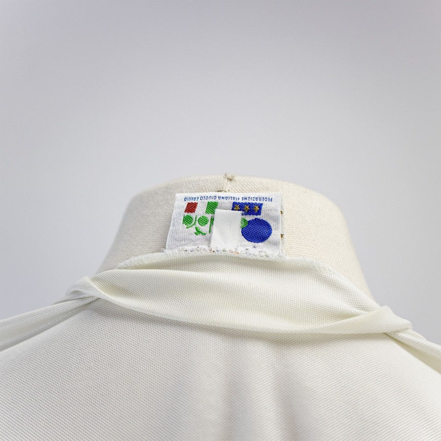 T-shirt nazionale italiana con fondo bianco e stampe in blu e tricolore con aggiunta di tre stelle in diagonale, scollo circolare. Condizioni perfette, sponsor tecnico Diadora.