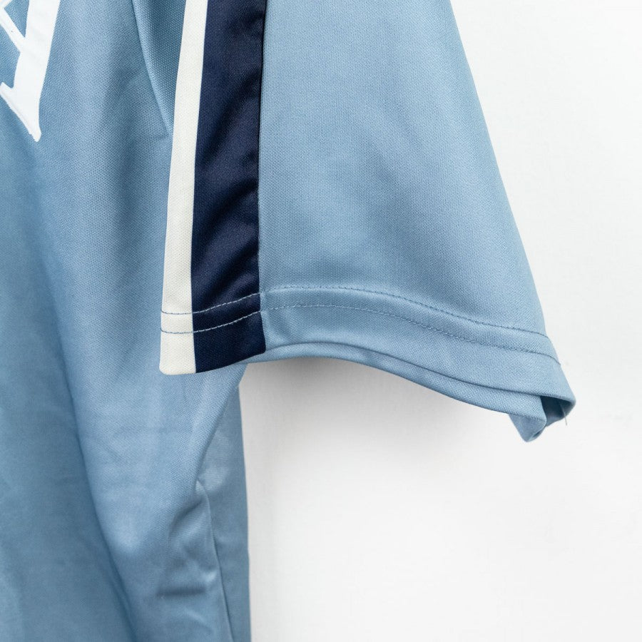 T-shirt di allenamento della Nazionale Italiana realizzata da Puma per la stagione 2006, anno dello storico trionfo ai Mondiali in Germania. Il design presenta un elegante azzurro chiaro con dettagli blu navy e bianchi, accompagnato dal colletto a V. Sul petto compaiono lo stemma FIGC con le tre stelle e il logo Puma. Un pezzo iconico legato a un'annata indimenticabile per gli Azzurri.