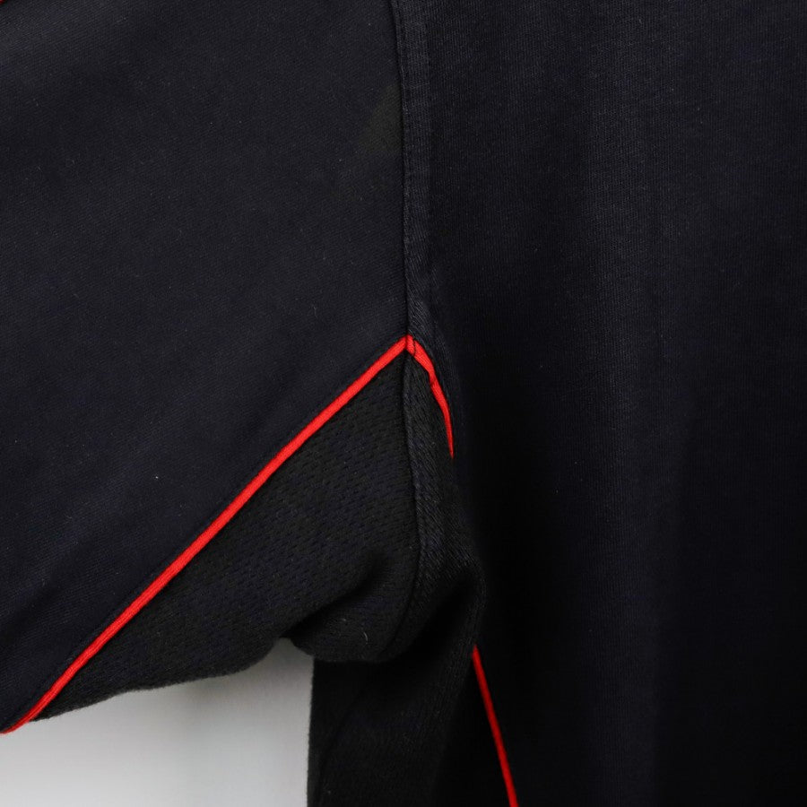 T-shirt da allenamento del Milan utilizzata nella stagione 1999/2000, prodotta da Adidas. Il design è caratterizzato da una base nera con dettagli rossi, tra cui le tre strisce Adidas sulle maniche e il bordo del colletto. Sul fronte sono presenti il logo Adidas come sponsor tecnico e il marchio Opel come sponsor commerciale, insieme alla scritta "Milan A.C." ben visibile sul petto. Taglia M.