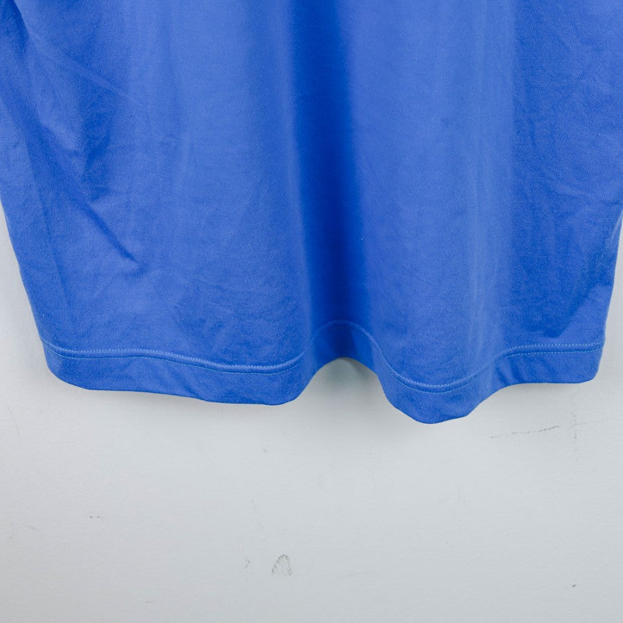 T-shirt ufficiale da allenamento del Napoli per la stagione 1994/1995, prodotta dallo sponsor tecnico Lotto con sponsor commerciale Record Cucine. Il design classico presenta il tradizionale colore azzurro con colletto a V e loghi stampati in bianco. Sul petto troviamo il logo Lotto, lo stemma del Napoli e lo sponsor Record Cucine, che compare anche sul retro insieme al logo del fornitore tecnico. Realizzata in 100% poliestere, garantisce leggerezza e comfort durante gli allenamenti. Taglia XL.