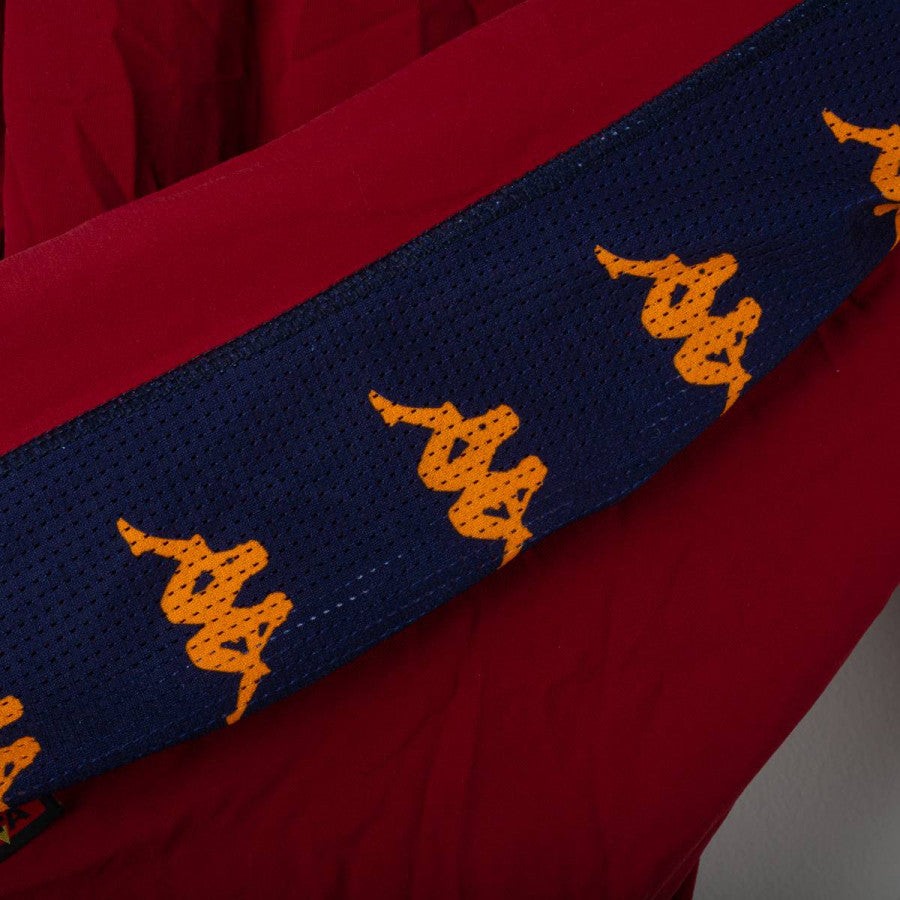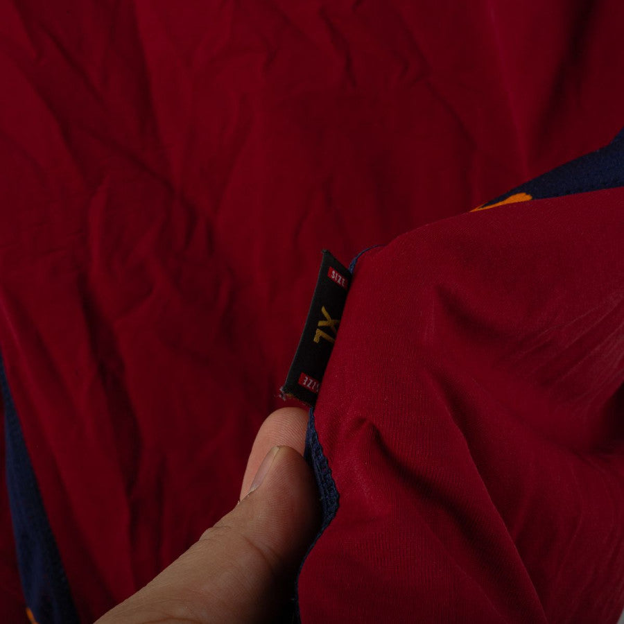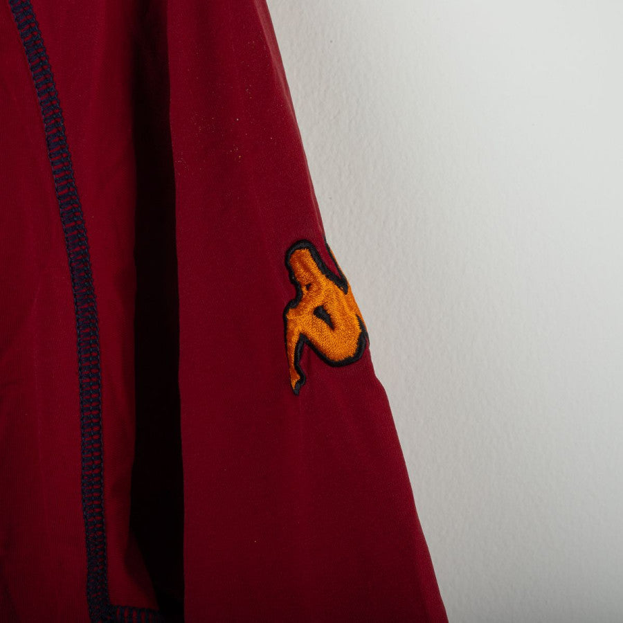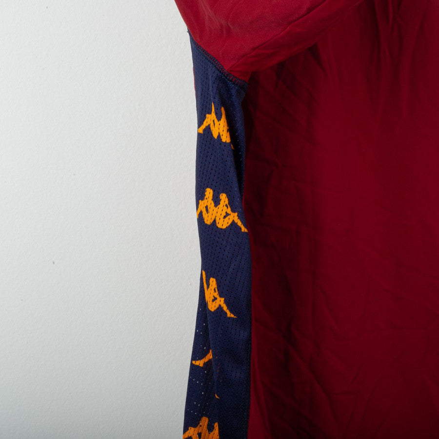 Maglia d'allenamento ufficiale AS Roma stagione 2001/2002, prodotta da Kappa. Modello a maniche lunghe in colore rosso granata con dettagli blu navy e loghi Kappa ricamati sulle maniche. Sul petto il logo INA Assitalia e il marchio Kappa, sul retro scritta “Kappa” e ricamo “as roma”. Realizzata in tessuto tecnico 100% poliammide, leggera e traspirante. Una maglia iconica dell'era post-scudetto, simbolo dello stile Kappa nei primi anni 2000. Taglia XL.
