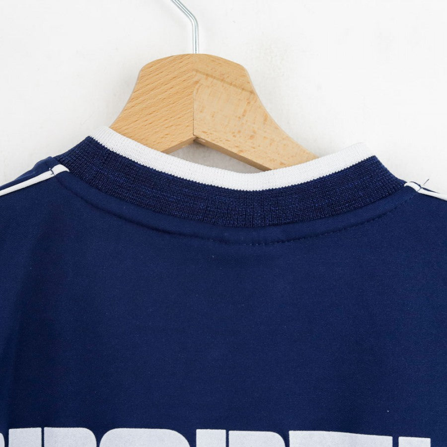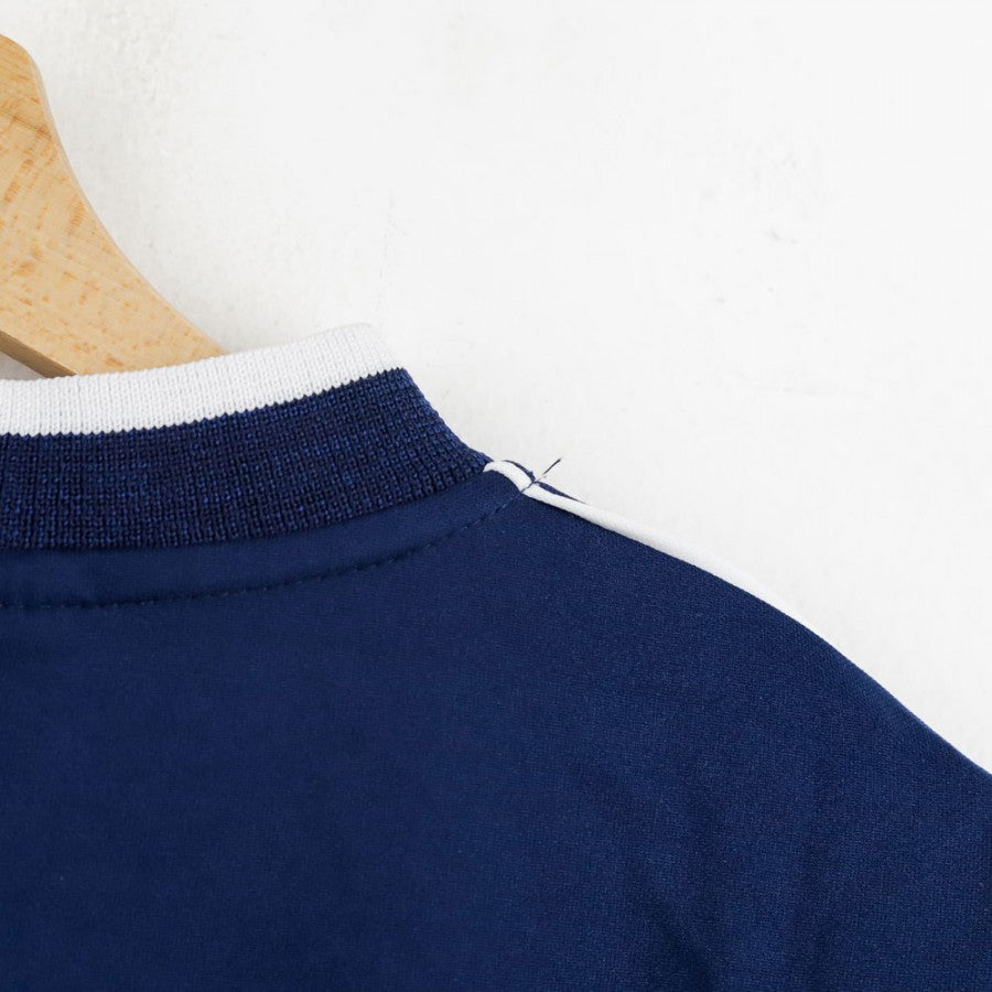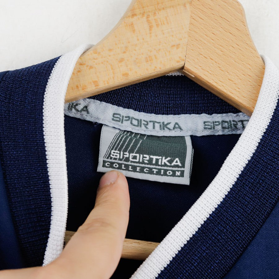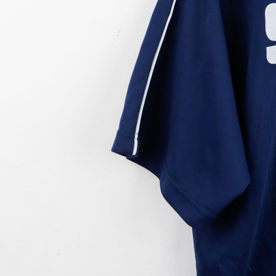 T-shirt Allenamento Venezia Sportika 2003/2004. Maglia da allenamento ufficiale dell'A.C. Venezia realizzata dallo sponsor tecnico Sportika nella stagione 2003/2004. Il colore blu navy è impreziosito da dettagli bianchi sul colletto e sulla spalla, con logo Sportika ben visibile sia sul fronte che sul retro. Sul petto spicca lo stemma del club lagunare. Taglia M visibile nell'etichetta interna.