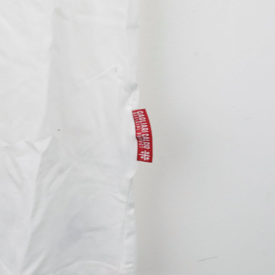T-shirt ufficiale del Cagliari realizzata da Eye Sport per la stagione 2022/2023. Il design richiama le radici storiche del club con un colore bianco predominante, dettagli rossoblù e laccetti sul colletto. Sulle maniche è presente la bandiera dei quattro mori, simbolo della Sardegna, mentre il logo del Cagliari si trova sul petto.
