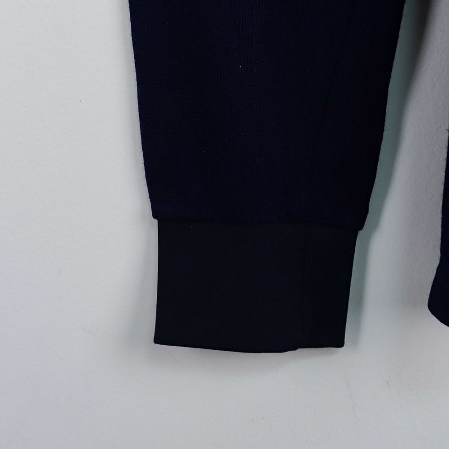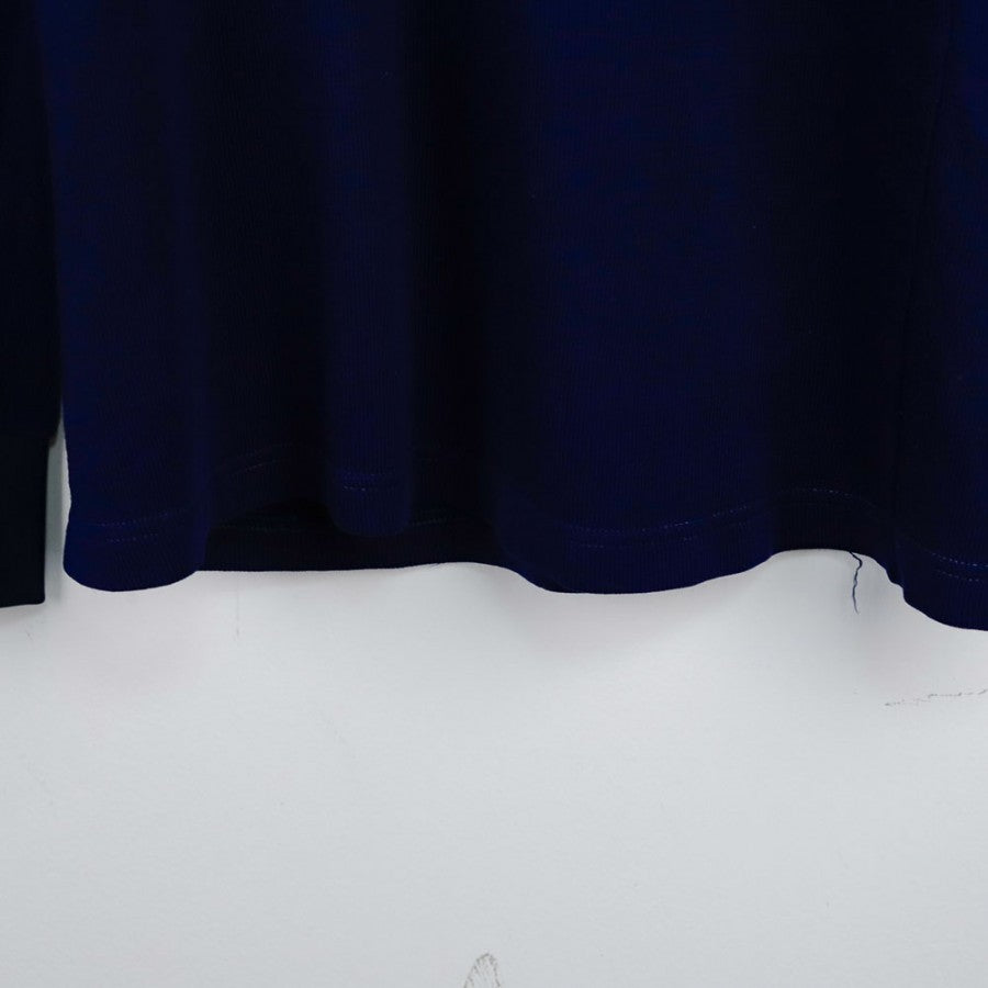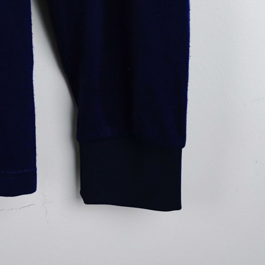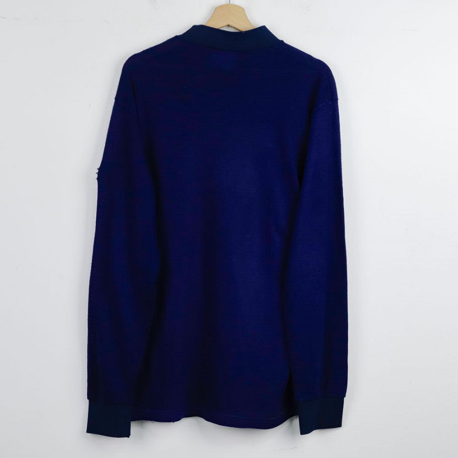 T-shirt ufficiale del Napoli, stagione 1993/1994, prodotta dallo sponsor tecnico Umbro. Questo modello a maniche lunghe è caratterizzato da un design semplice e raffinato, con una base blu scuro e dettagli in bianco. Lo stemma della S.S.C. Napoli è cucito sul petto accanto al logo Umbro, mentre il nome dello sponsor commerciale Voiello è stampato in grande al centro. Realizzata in taglia XL, questa maglia rappresenta un cimelio imperdibile per i collezionisti e i tifosi partenopei.