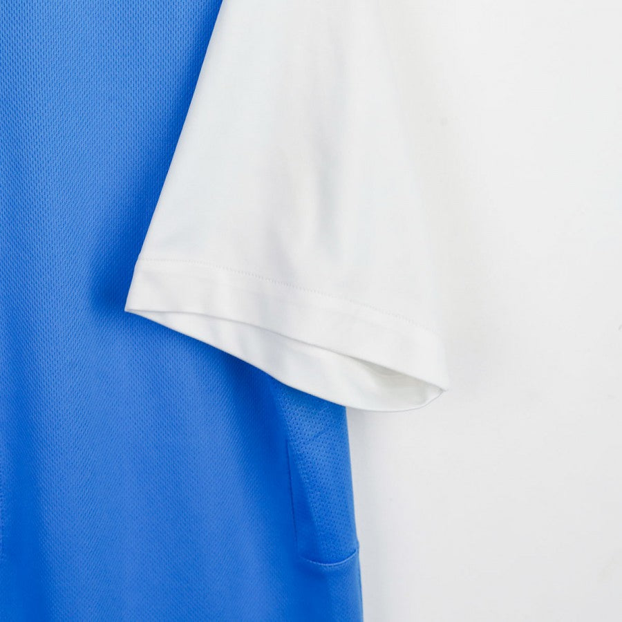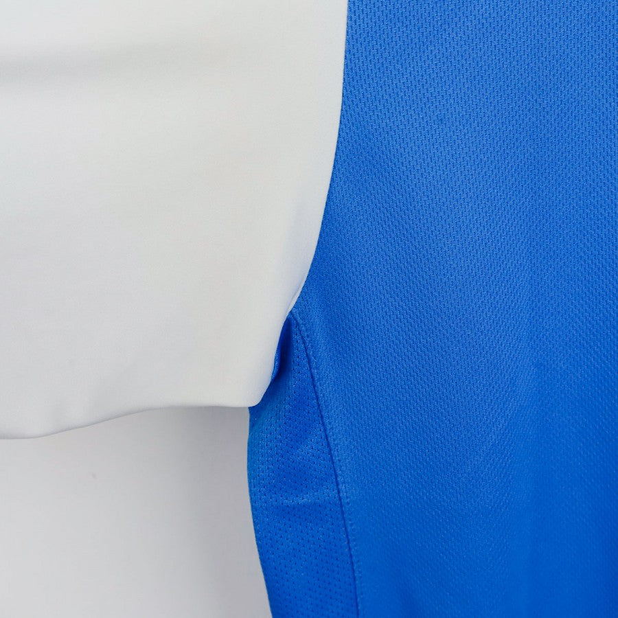 T-shirt di allenamento dell'Inter risalente alla leggendaria stagione 2009/2010, quella dello storico Triplete. Prodotta da Nike, è caratterizzata da un design azzurro acceso con maniche bianche e dettagli minimal. Sul petto sono presenti lo stemma del club con la stella, il logo Nike, lo Scudetto e il main sponsor Pirelli. Taglia L. Un capo iconico legato a una delle stagioni più gloriose della storia nerazzurra.