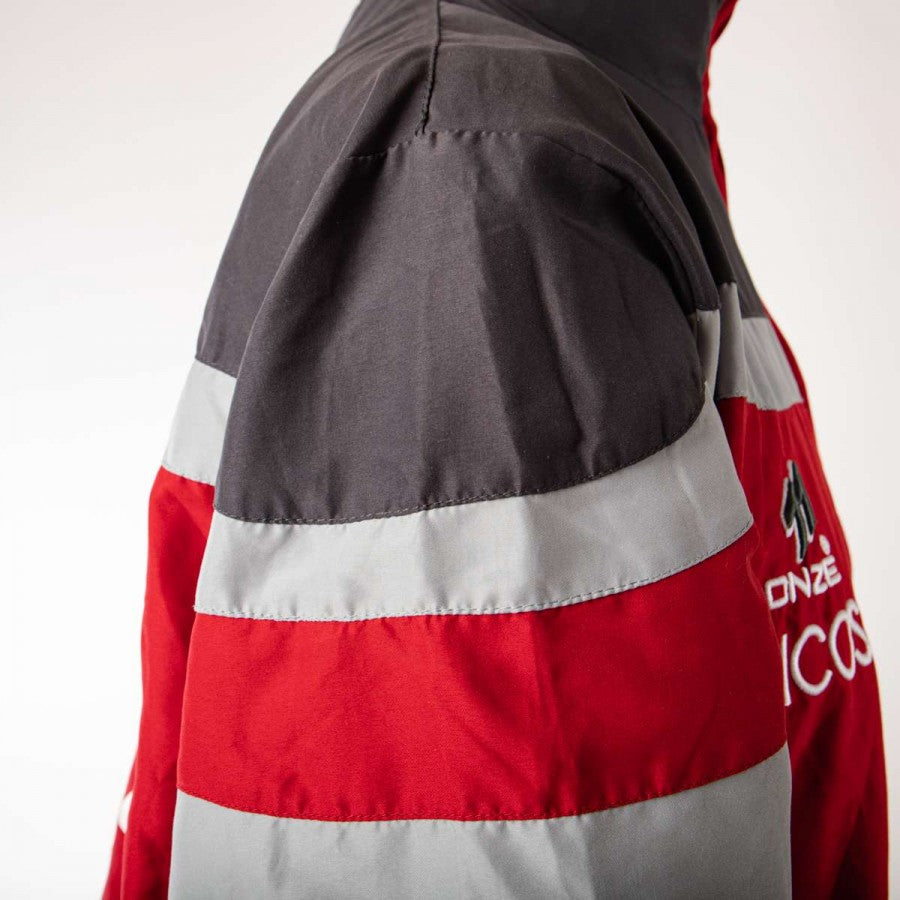 Maglia tuta della Reggina Calcio della stagione calcistica 2005/2006 realizzata dalla azienda di abbigliamento sportivo Onze, con sponsor istituzionale Gicos e logo della squadra calabrese cucito. Munita di tasche con zip, la giacca è in colore grigio e rosso.