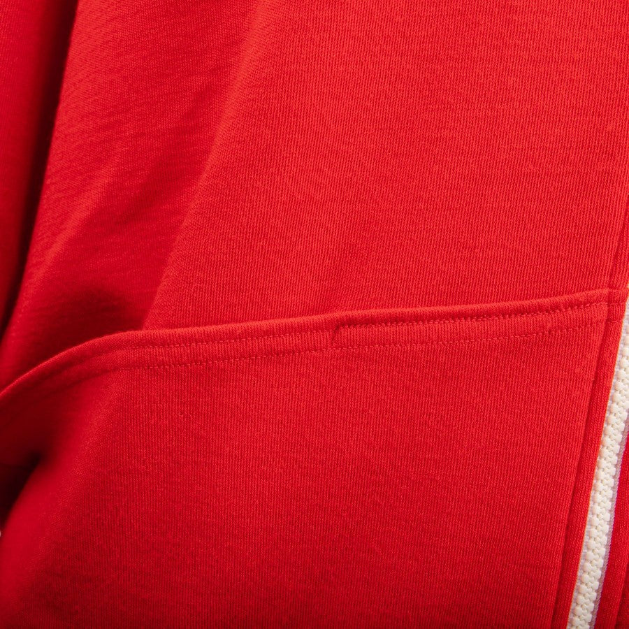 Modello tipicamente dell'epoca, con inserti di tessuto a contrasto di colore, logo della AS Roma cucito lato cuore e logo Pouchain ricamato