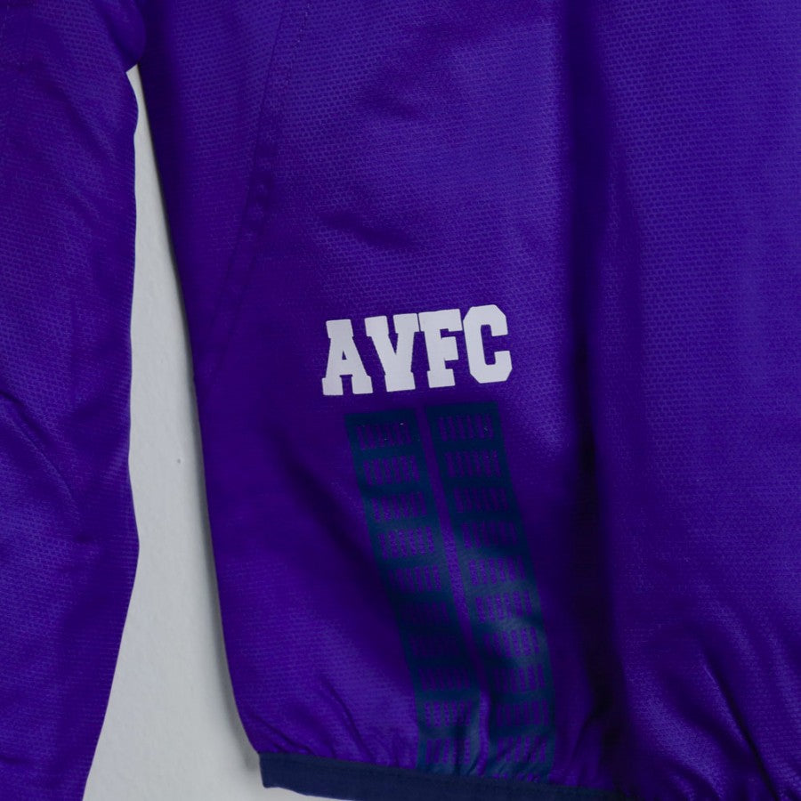 Modello di colore viola con pantalone di colore blu, con lo stemma del club posizionato lato cuore.