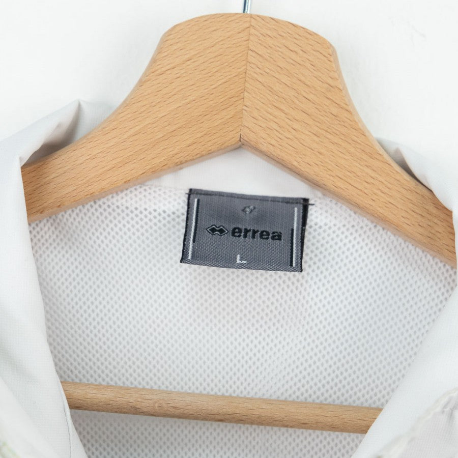 Stemma Atalanta cucito lato cuore, logo Errea. Sponsor commerciali applicati