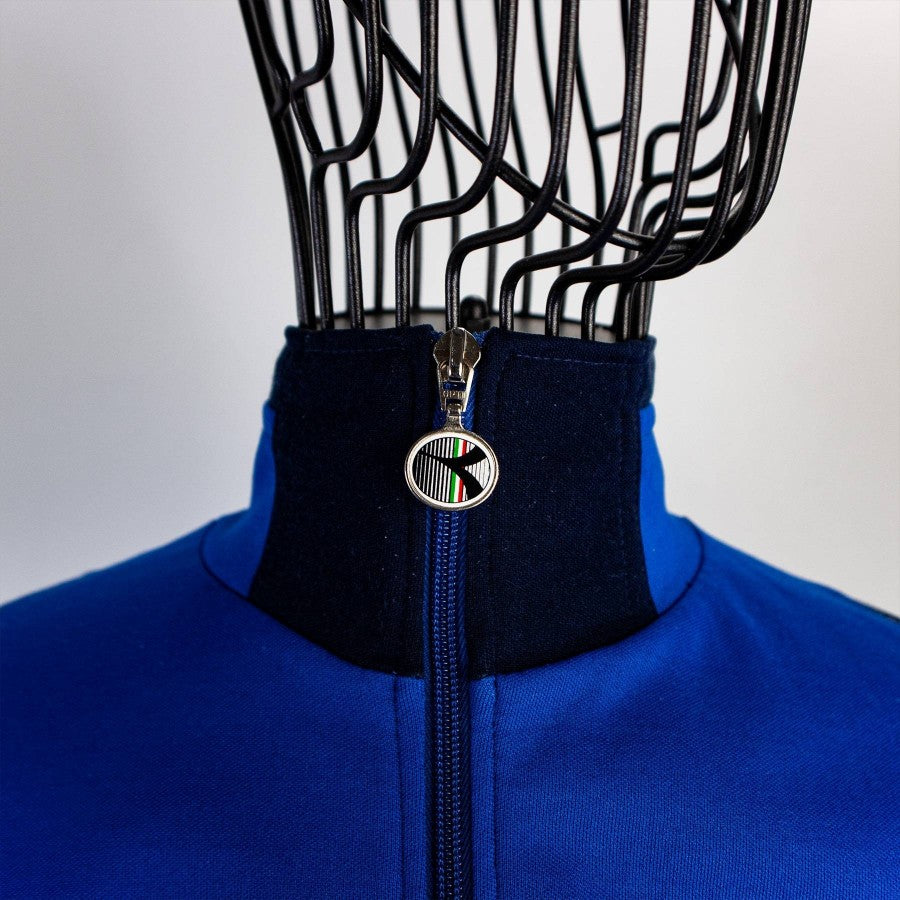 Giacca della Nazionale Italiana di inizio anni 90 prodotta dalla Diadora. Capo realizzato in materiale acetato con stemmi ricamati e cuciti. Chiusura full zip in ottime condizioni. Tuta vintage di calcio del 1990