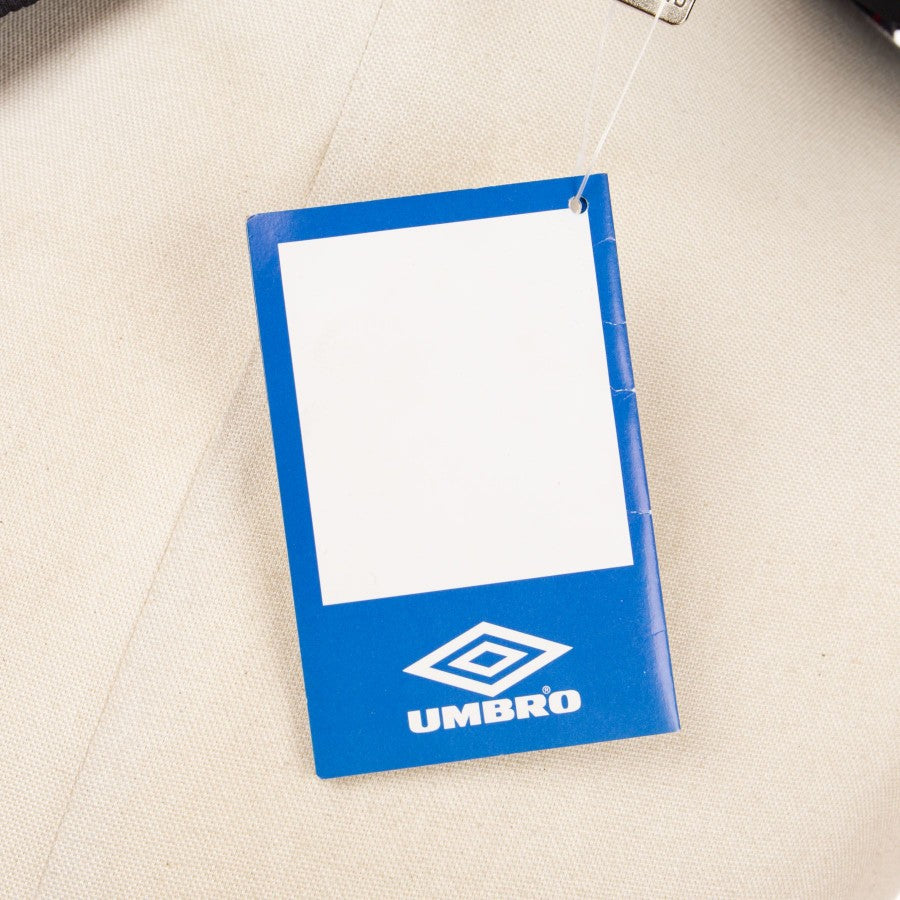 La tuta realizzata da Umbro per la stagione 1992/1993 si presenta in ottime condizioni, il tessuto è ottimo, privo di aloni e macchie, dalle cerniere funzionalti. La taglia è M