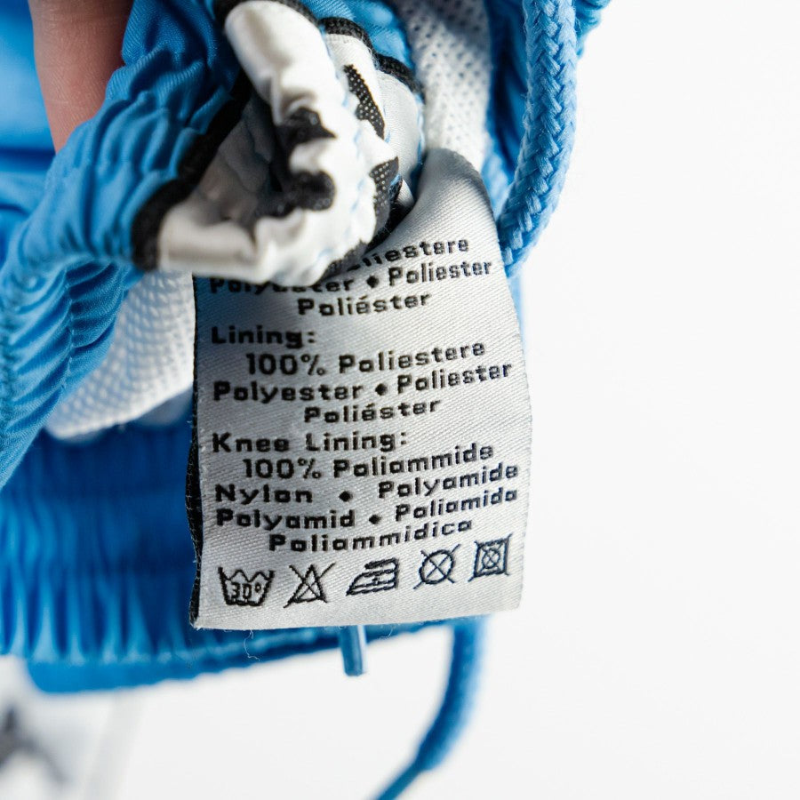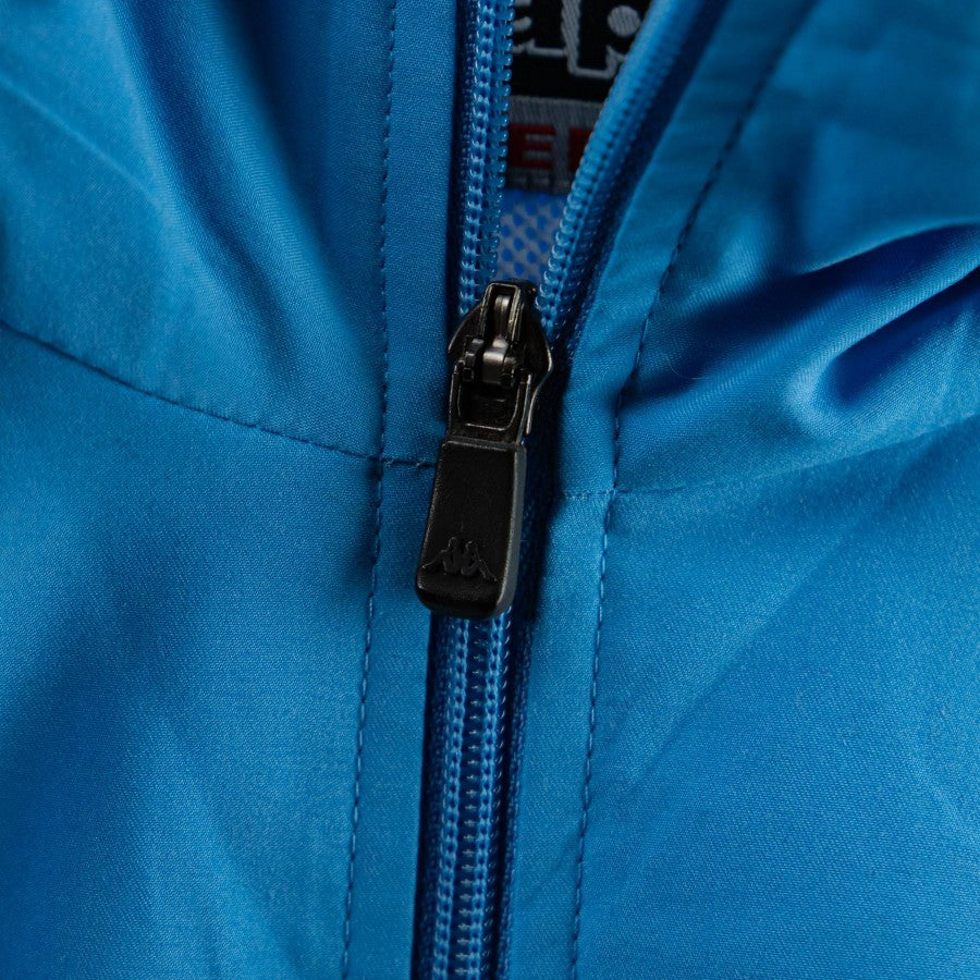 Modello a maniche lunghe di colore azzurro con bande laterali logo. Full zip. Sul petto troviamo lettering Napoli. Stemma della squadra presente nel pantalone.