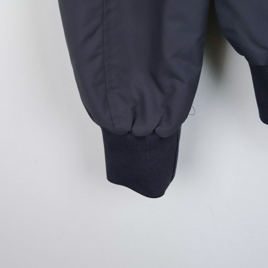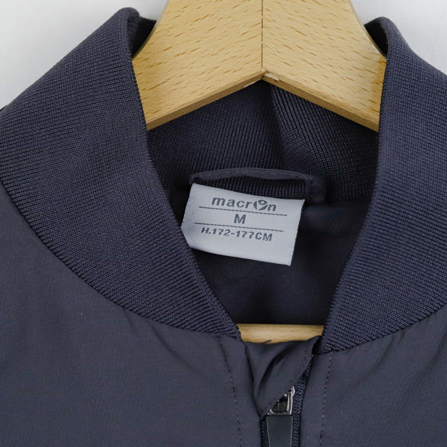 Tuta ufficiale SSC Napoli realizzata da Macron per la stagione 2014/2015. Composta da giacca full zip e pantaloni coordinati. La giacca è in tessuto grigio antracite con inserti azzurri sulle spalle e scritta “SSC NAPOLI” bianca ricamata sul retro. Stemma SSC Napoli cucito lato cuore e logo Macron cucito sul petto destro. Pantaloni grigio scuro con inserti laterali azzurri e logo Macron bianco applicato. Fondo gamba regolabile con zip. Vestibilità regolare. Taglia M.