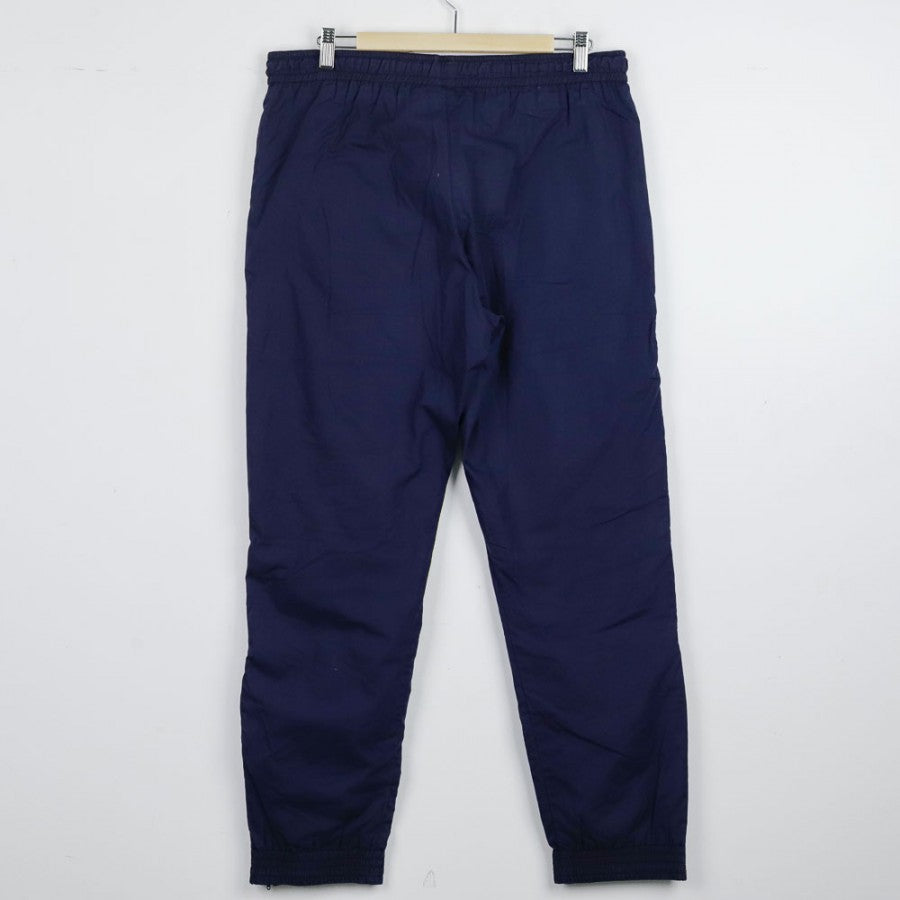 Completo ufficiale della SSC Napoli, stagione 1991/1992, prodotto dallo sponsor tecnico Umbro. Questa tuta è composta da giacca e pantaloni, entrambi in tonalità blu e azzurro con un design geometrico audace tipico dell'epoca. La giacca presenta lo stemma della SSC Napoli cucito sul petto accanto al logo Umbro, mentre la scritta Umbro e il marchio Voiello, sponsor commerciale, sono riportati sia sul fronte che sul retro. I pantaloni riportano il logo Umbro e lo stemma della squadra, con dettagli a strisce e contrasti cromatici.